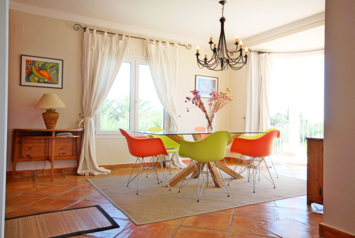 This spacious villa is located in the quiet neighborhood of Pinar de l'Advocat in Moraira. The house was built in 2001 and renovated in 2023. Here you will live a short distance from the center and beaches of Moraira.