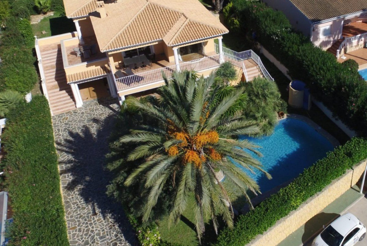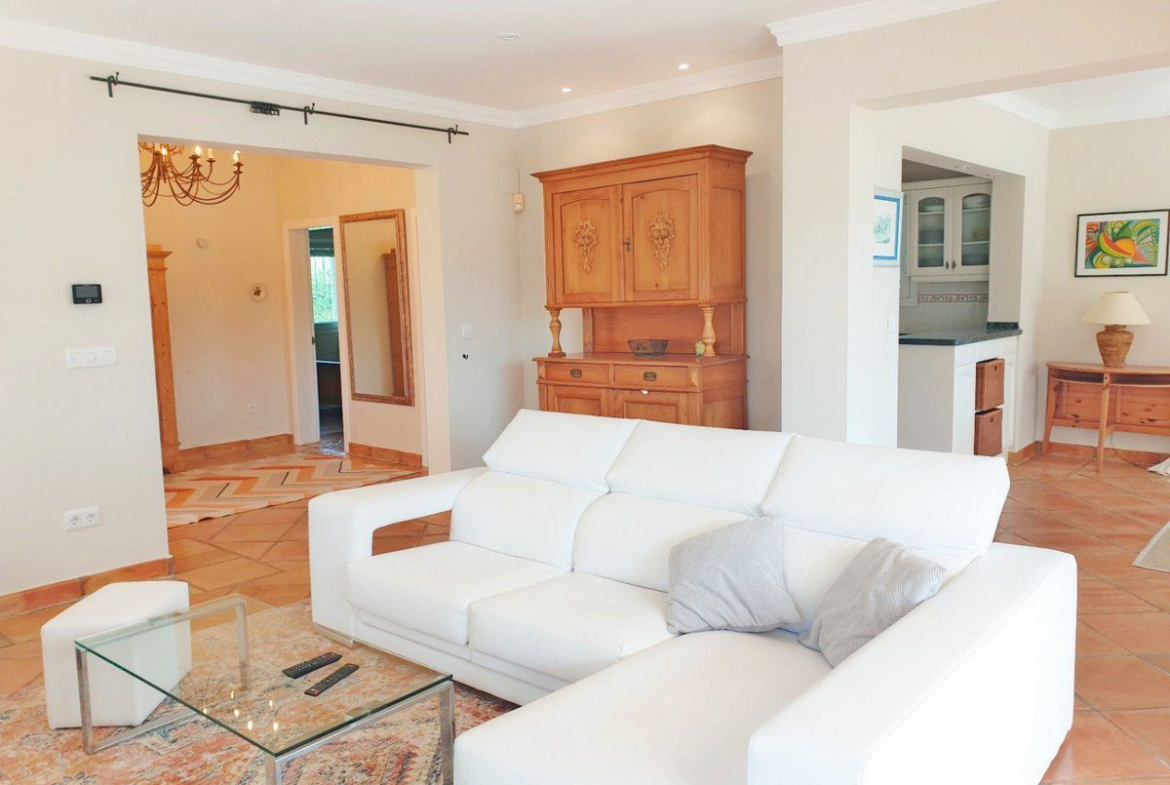 This beautiful classic-looking villa has 4 bedrooms and is located in Pinar de l'Advocat in Moraira. Built in 2001 and recently renovated in 2023, this well-maintained property offers all modern conveniences and is spread over two floors. Situated in a quiet residential area less than 10 minutes' drive from the lively center of Moraira and the beach, the property has beautiful views over the valley towards the sea.