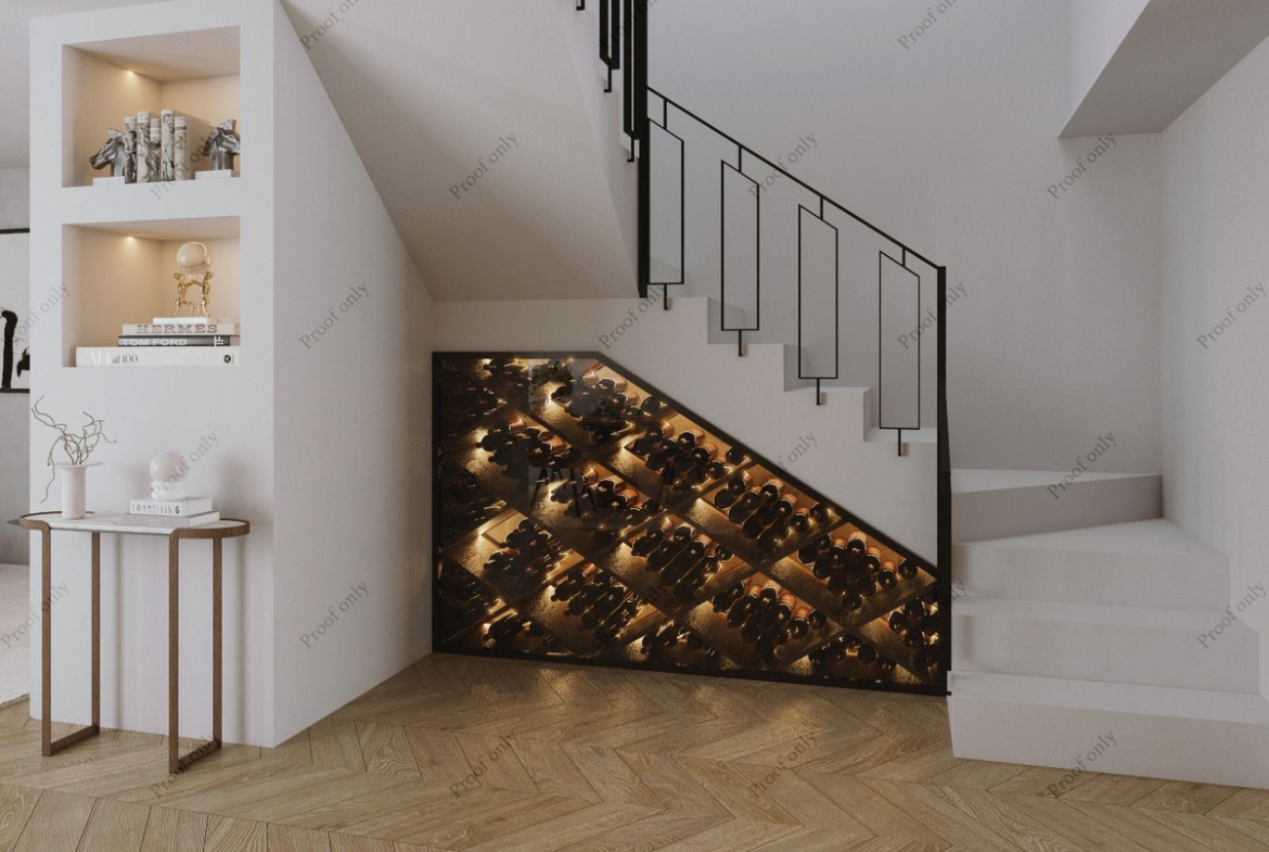 Inside, you're welcomed into a warm living room with an open-plan kitchen, the social heart of the home. The clever layout, natural light, and modern finishes create a sense of luxury and tranquility. The bio-ethanol fireplace creates ambiance on cool evenings, while the beautifully integrated wine cellar under the stairs is a real eye-catcher for wine lovers and anyone who enjoys entertaining in style.