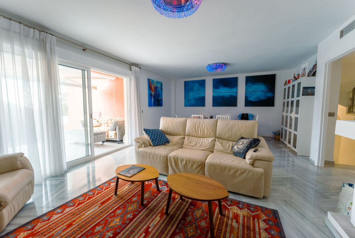 This is true frontline beach living in Garden Beach, Estepona — a first-line sea complex where the Mediterranean becomes part of your everyday life. Positioned directly on the coast, the property enjoys open sea views, protected coastal frontage, and the kind of setting that simply cannot be replicated. There are no roads in front, no future construction to interrupt the horizon — just the sound of the waves and uninterrupted blue stretching out before you.
