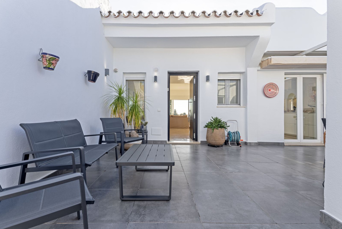 Welcome to this stunning corner semi-detached duplex townhouse, perfectly positioned in the heart of the prestigious Golf Valley and offering breathtaking panoramic views over Aloha Golf and the Mediterranean Sea. Located within the charming and tranquil community of La Retranca del Ángel, residents enjoy abundant parking, beautifully landscaped gardens, and a pristine communal pool. The setting is ideal—peaceful yet just moments away from local amenities, the beach, vibrant Puerto Banús, and the renowned Aloha College.