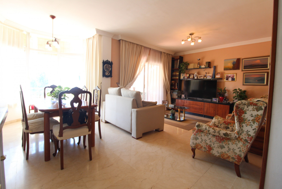 La Campana area in Nueva Andalucia is a thriving community with a vast array of amenities. Offered for sale is this house situated walking distance from all local services. The property enjoys far reaching views towards the sea and the spacious accommodation distributed on two floors comprises 4 bedrooms, two bathrooms and guest toilet, an open plan kitchen/dining and lounge area a further sitting room with an open fire in the lower floor and 3 different terrace areas on both floors. From the terraces you can have views of the mountains and the sea. Other features include, laundry room, off road parking, pantry and air conditioning. MUST VIEW!!