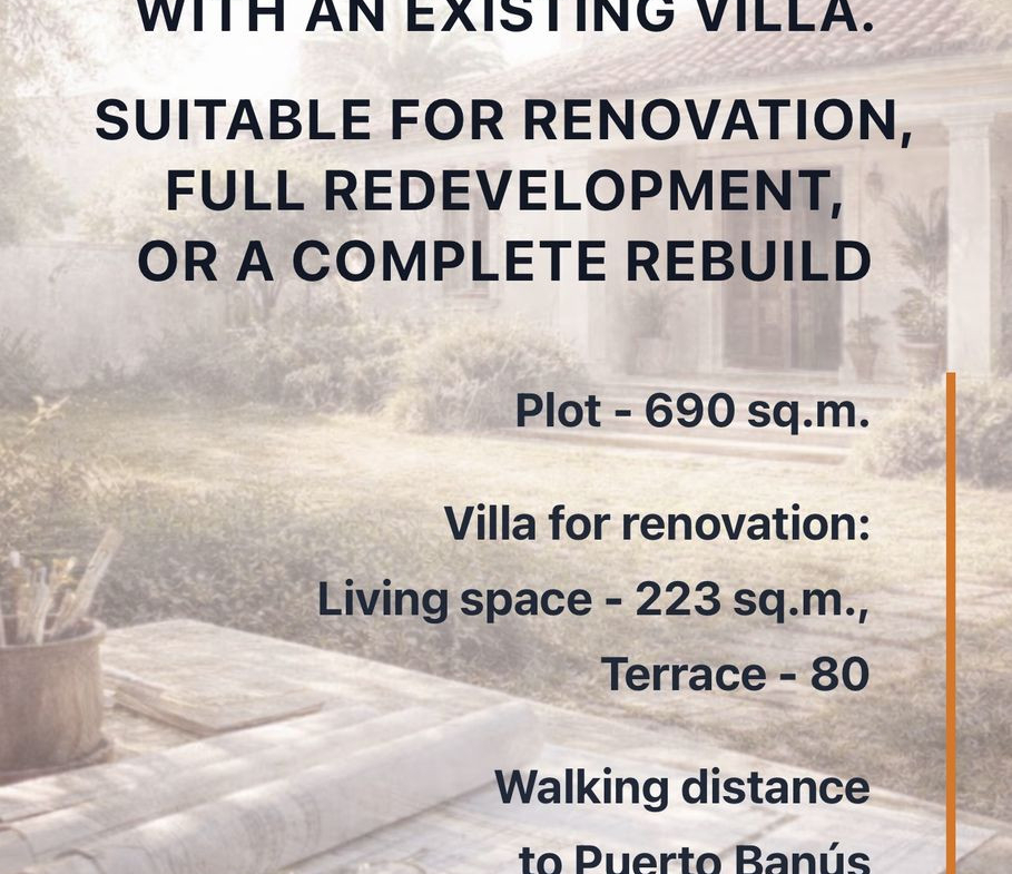 A 223 m² villa set on a 690 m² plot — a renovation project with preliminary works already completed (the property has been partially stripped and windows removed), allowing you to immediately proceed with your own concept without additional demolition costs.