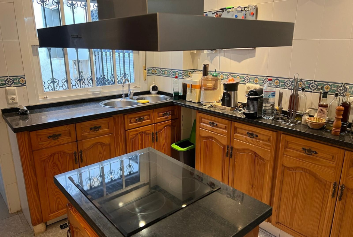 Spanning 238 m² over three floors, this well-maintained second-hand property is designed for comfort and versatility. It features four spacious bedrooms with built-in wardrobes, three modern bathrooms, and an office space for remote working. The inviting living room boasts a cosy fireplace with wood storage, while two fully equipped kitchens provide flexibility for extended families or entertaining. Step outside to enjoy terraces and balconies, a barbecue area for al fresco meals, and a private swimming pool for ultimate relaxation. Additional highlights include a lift for easy access, full adaptations for reduced mobility, air conditioning, central heating, a storage room, and a private garage.