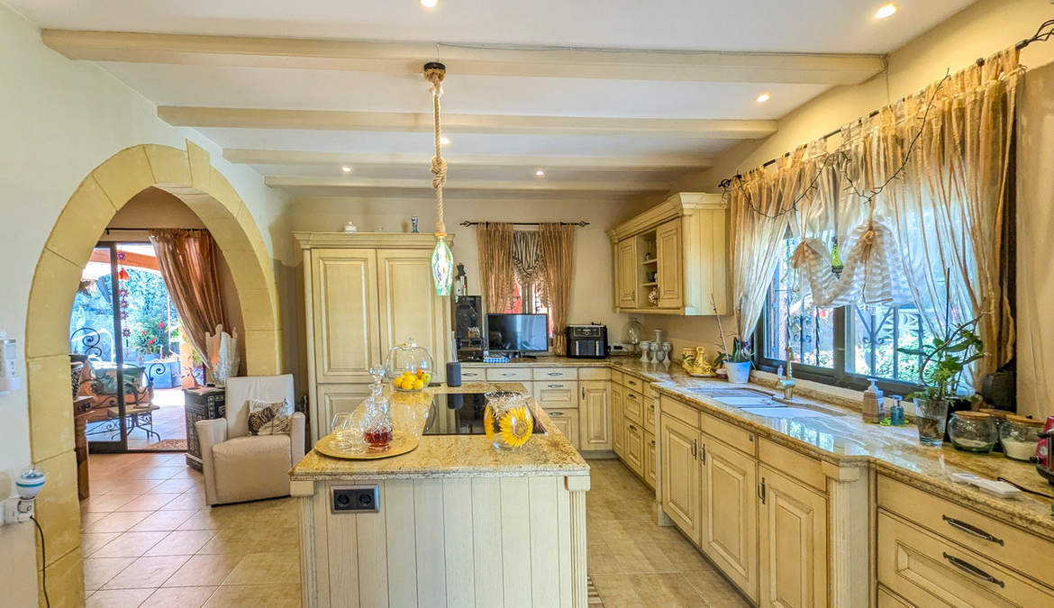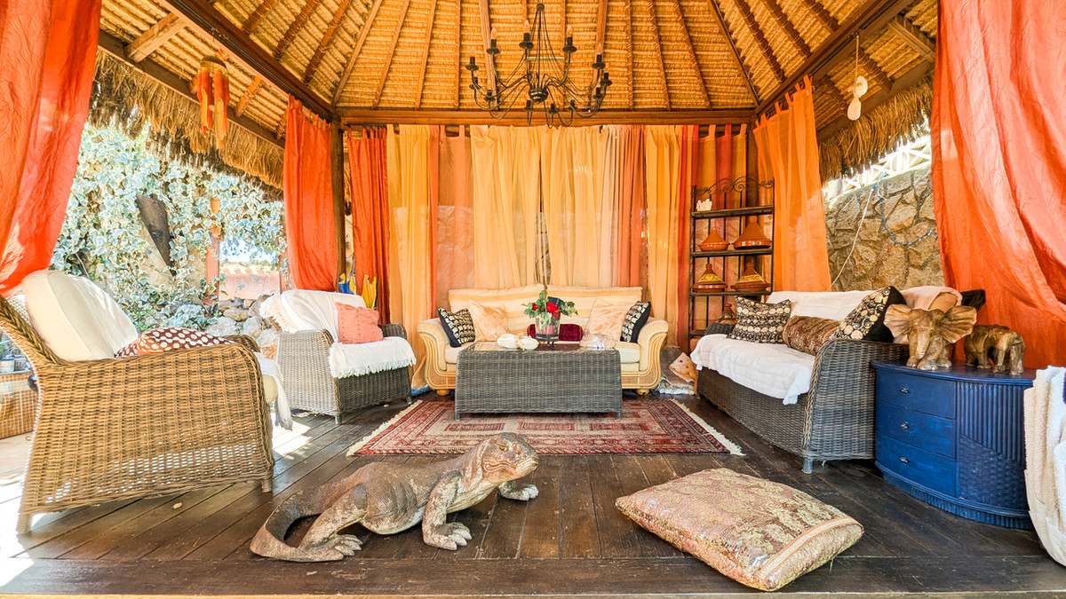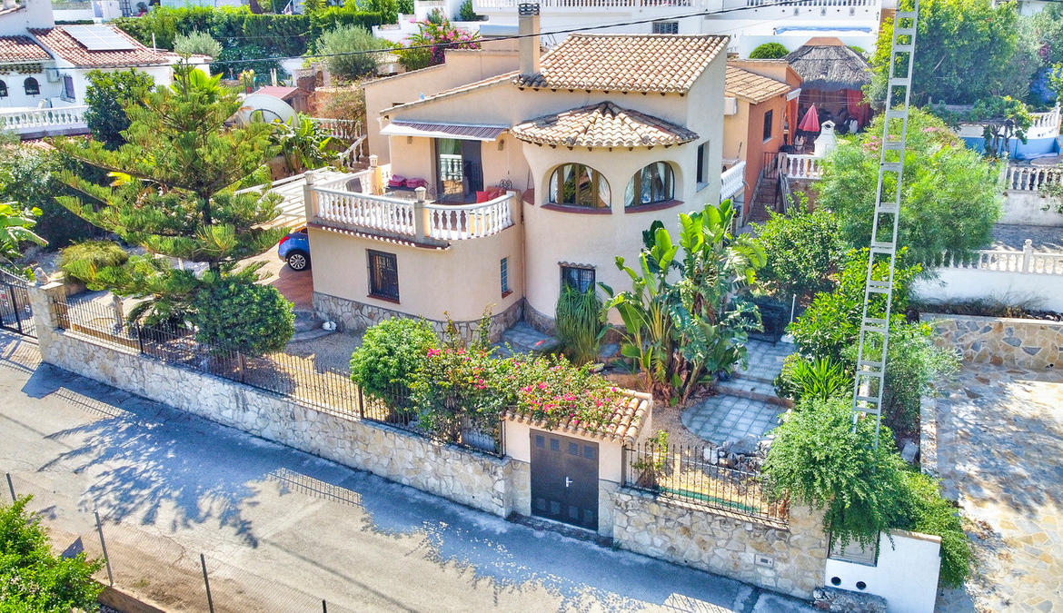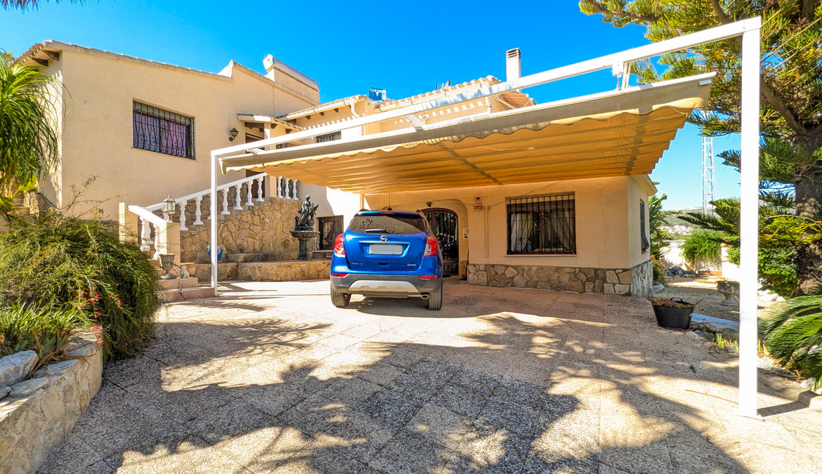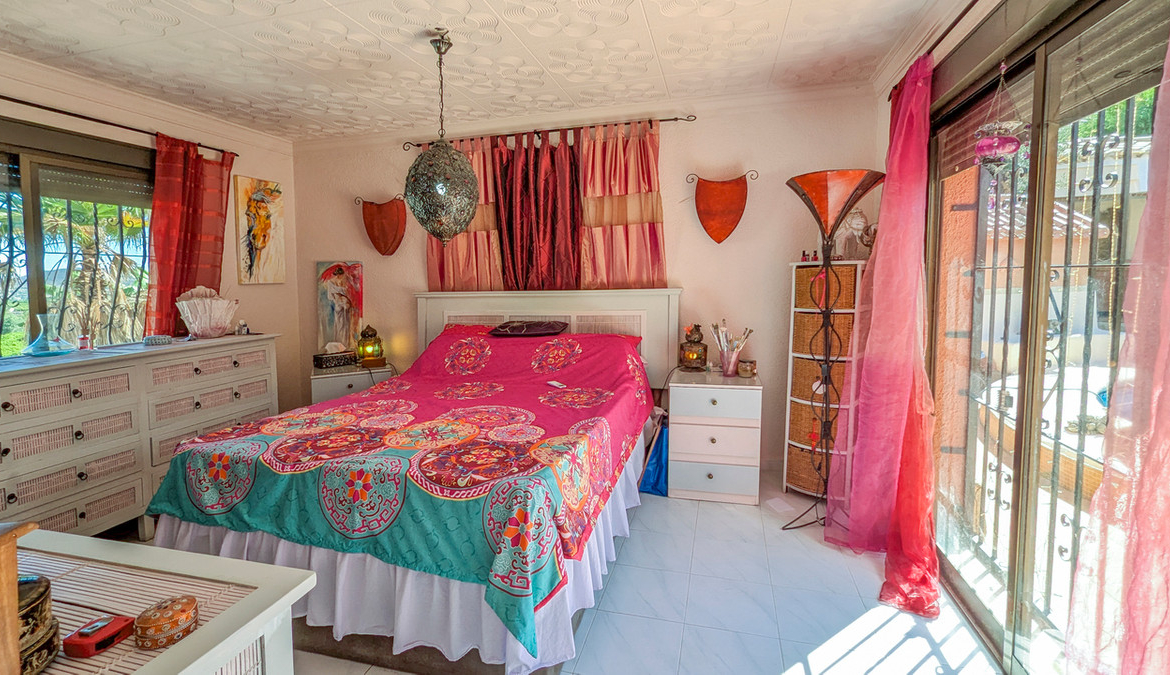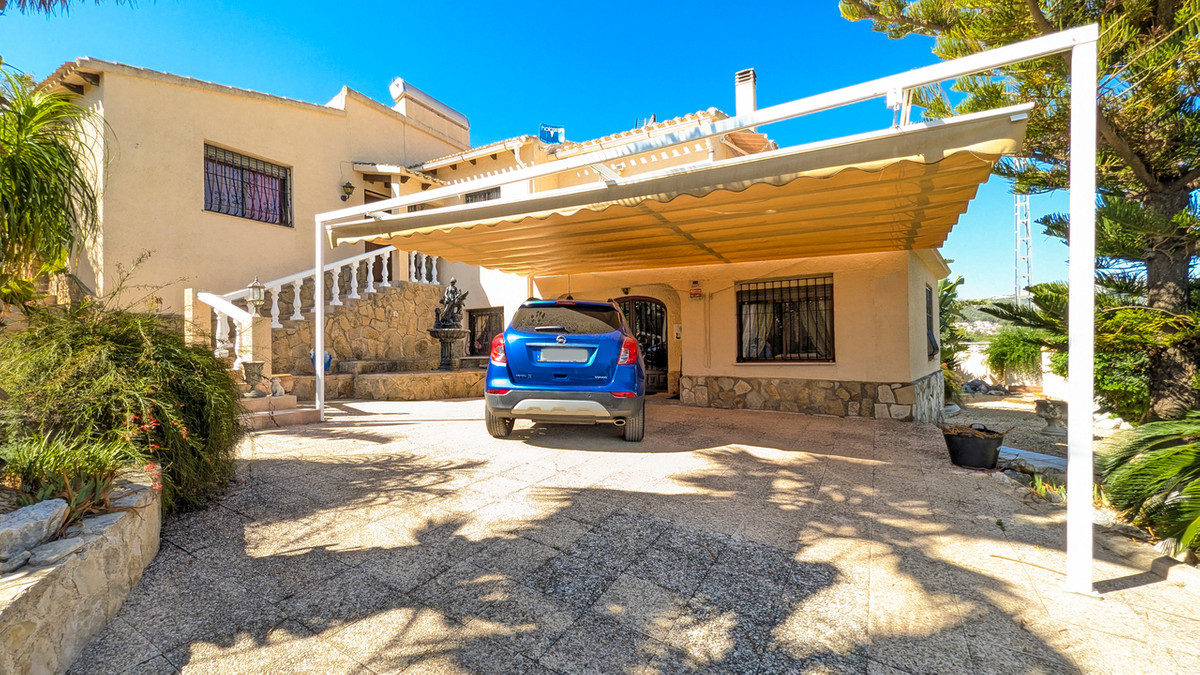 This impressive 4 bed 3 bath villa has been maintained to the highest levels by the current owner, who's artistic talent is shown throughout the property. Set in a quiet position on an urbanisation just a short walk to the shops, bars, restaurants and services offered by Orba, the popular village at the head of the Orba Valley, well known for its orange groves.The property is accessed by sliding electric gates which open to a large driveway with space to park several cars and an awning topped carport. The gardens that surround the property are mature with a variety of bushes and trees. A few stairs take you to the front door of the property which opens to an L shaped hallway. To the left of the front door is the master bedroom with a window overlooking the valley on one side and sliding doors that access the pool terrace to the other. This master bedroom benefits from a good size dressing room with built in wardrobes which opens to an ensuite bathroom that has a bath with shower over it. The first leg of the hallway takes us to a good-sized dining area that has access to the rear terrace, pool and several covered seating and dining options. It is also open to the large kitchen which benefits from high quality fittings and a large central island and a wood burner. Off the kitchen we find a small utility kitchenette and a west facing terrace ideal to enjoy a shaded breakfast. The rear terrace is extremely private and benefits from a kidney shaped pool, a covered hot tub, pool shower and mature trees and bushes that offer a haven of peace. There is also a large, covered terrace that offers large seating and dining areas. There is also a large Balinese style gazebo that offers an outdoor lounge overlooking the pool and views beside the house over the brick BBQ to the mountains the other side of the valley.The second leg of the hallway takes us to a guest double bedroom with built in wardrobes, a separate shower room and then to the good-sized living room which offers views over the valley, a second wood burner and sliding door access to an uncovered dining terrace that offers spectacular views over the orange groves, the valley and on the mountains surrounding the valley. From here a spiral staircase gives access to the lower level of the property. At the base of the staircase is a lounge area which has access to the covered parking to offer independent access. There is a bedroom to one side and to the other room currently used as an artist’s studio and that also has a bed. The lower floor extends to a kitchenette, a shower room and a storeroom which has connections for a laundry and also a wash sink.As it is built on the edge of the urbanisation, it offers fantastic open views over the valley, and due its position on a curve in the road it is not really overlooked by the neighbouring properties. It also benefits from a dual solar system, one for electric power and the other to run the hot water. Therefore, energy consumption is very low. This is a property that appeals to the heart and the head, so please contact us to arrange a viewing.