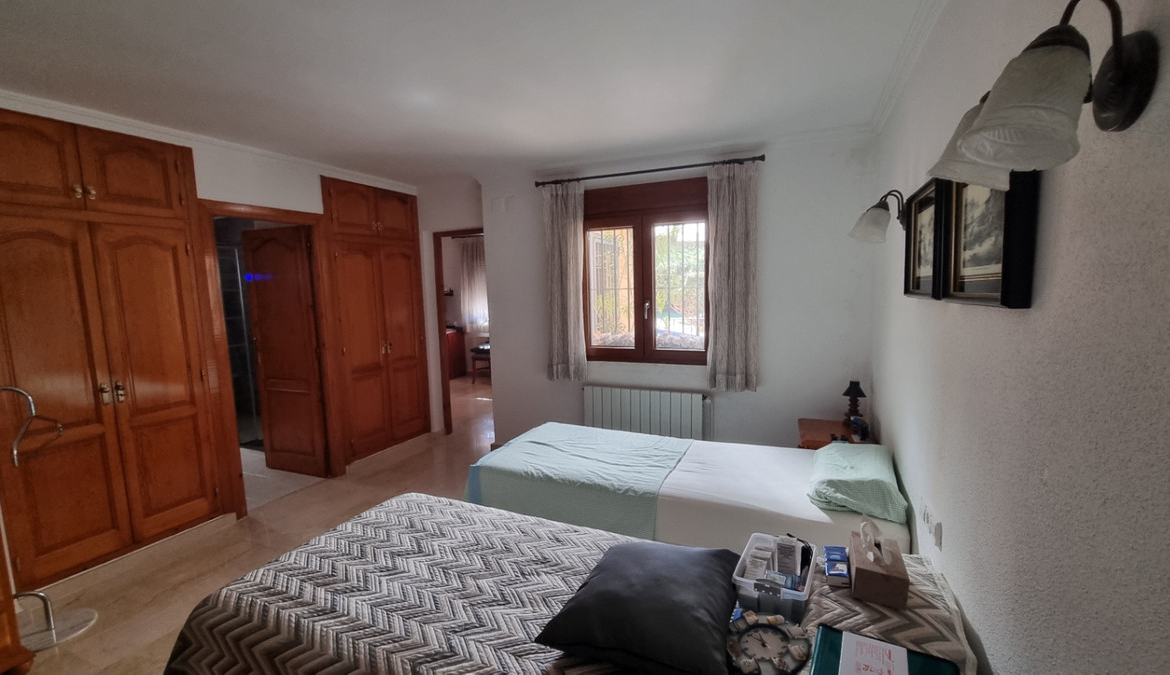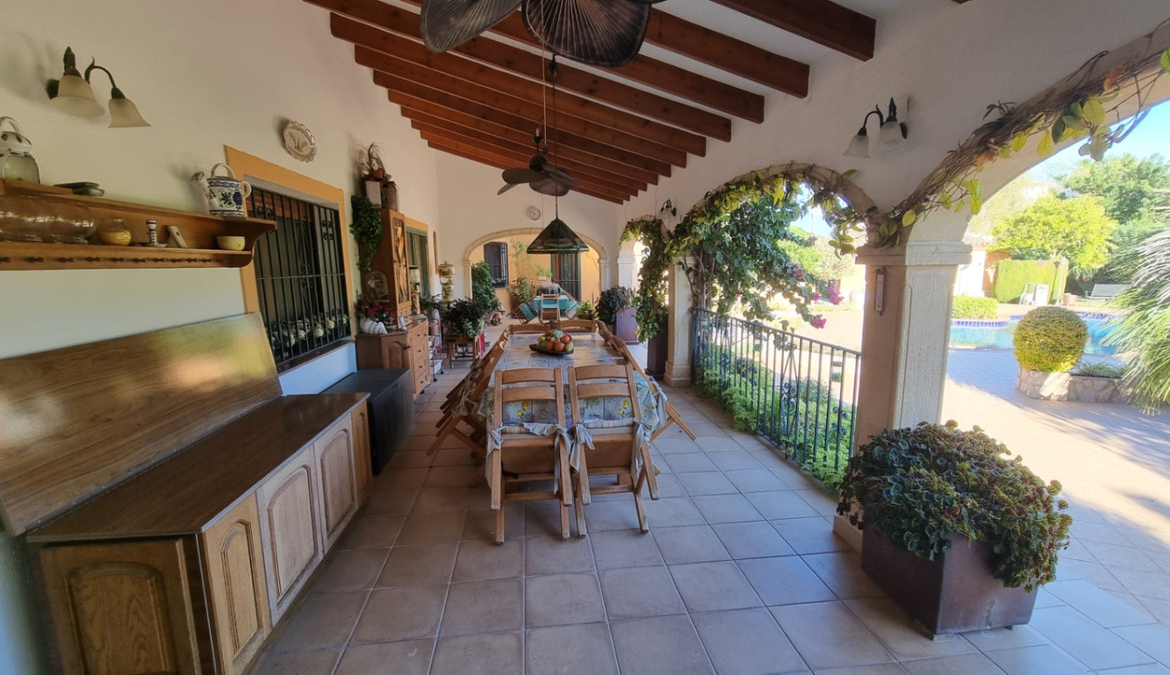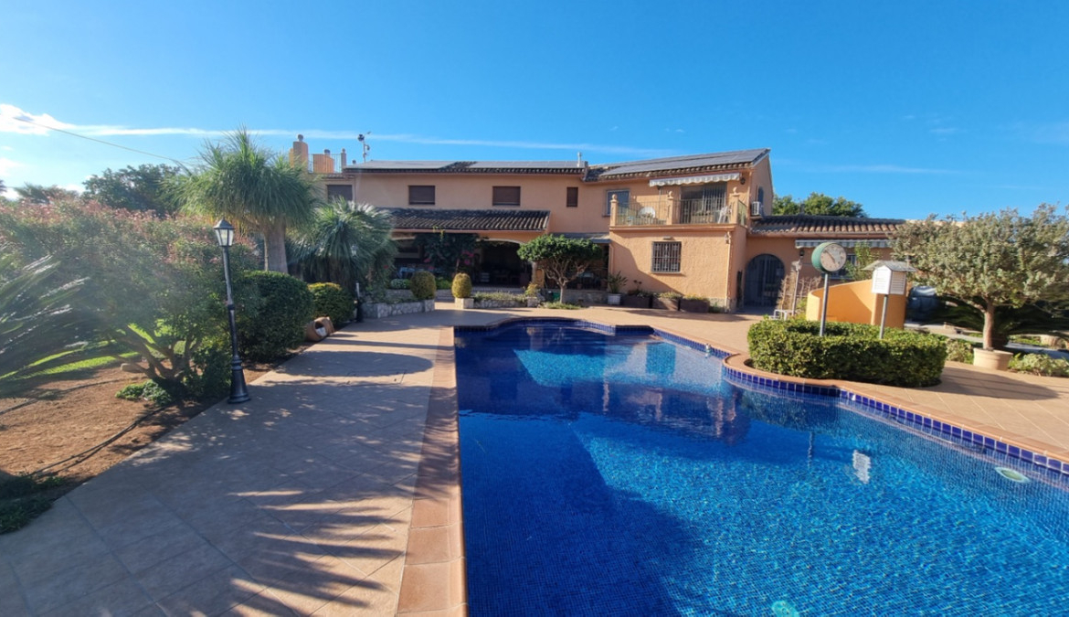 Location: This stunning property is situated in a quiet rural area with good connections to the town of Pedreguer, characterized by its excellent infrastructure and proximity to schools, shops, and healthcare. The idyllic surroundings also offer numerous leisure activities and a high quality of life. Property description: This spacious house impresses with its typical architecture and versatile use. With a living area of approximately 350 m², divided into 2 floors, it provides ample space for a large family or an upscale residence. The upper floor houses two completely separate apartments, ideal for guests or as independent housing units. The outdoor area is divided into two sections. On one side, there is the pool/outdoor kitchen area with green spaces and trees. On the other side, there is a separate landscaped agricultural area with crops. Be sure to schedule a viewing appointment today. The house will be available starting in late summer 2025. Features: Living area: approx. 350 m² Plot: approx. 3,500 m² Rooms: 6, including 5 bedrooms and 3 bathrooms Solar system heat pump Pool Outdoor kitchen Double garage Workshop Wine cellar Kitchen: Equipped kitchen with utility room and dining area. Living room: Spacious and bright living-dining room with fireplace. Spacious bedrooms with en-suite bathrooms. Own workshop and plenty of storage space. Garden: Well-maintained garden with covered terrace, large pool, and additional building for the outdoor kitchen. Exterior: Double garage, carport, parking spaces for additional cars. Own planting and cultivation area on the property. Central heating in all rooms. Tiled floors. Alarm system and security system. Partially renovated in 2017. Miscellaneous: The house will be ready for occupancy from late summer 2025 and offers an exclusive living experience thanks to its generous room layout and high-quality furnishings. Schedule a viewing appointment today and see for yourself the advantages of this unique property.
