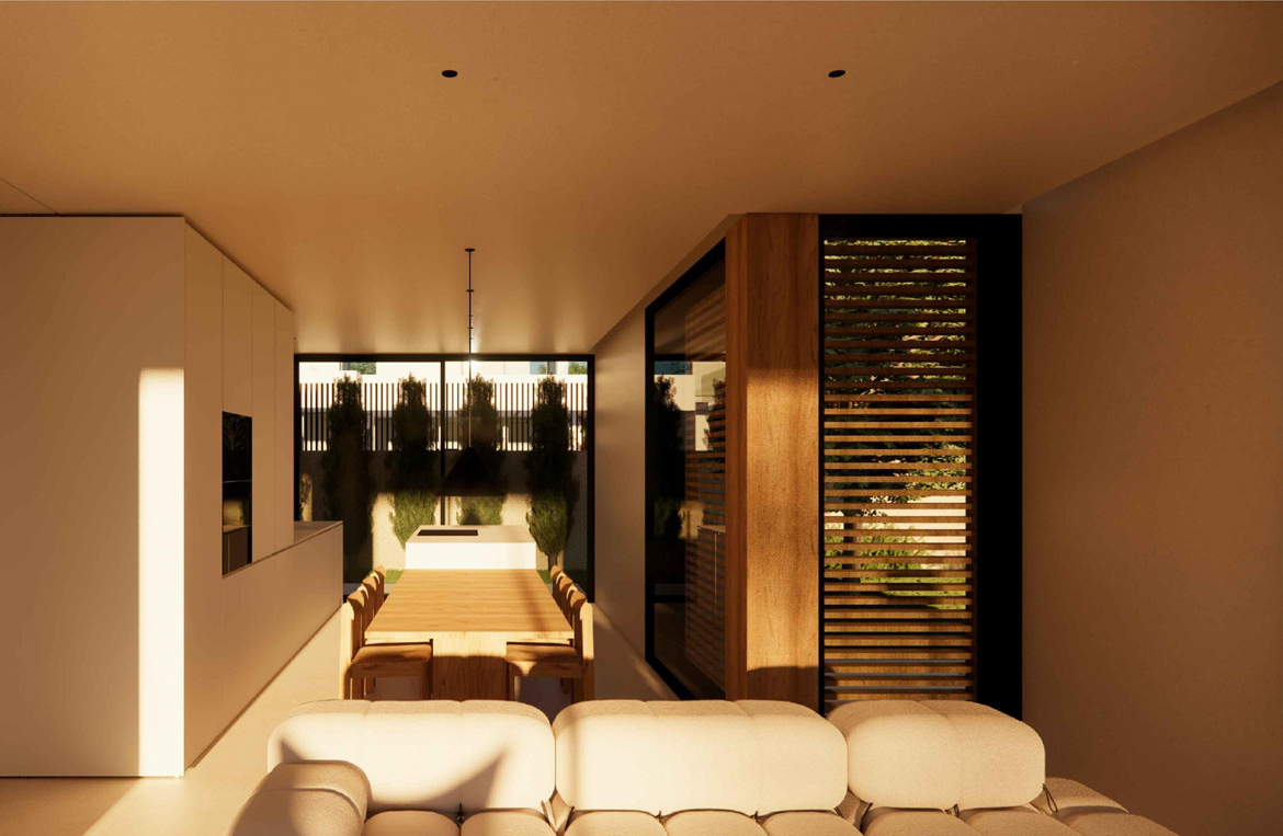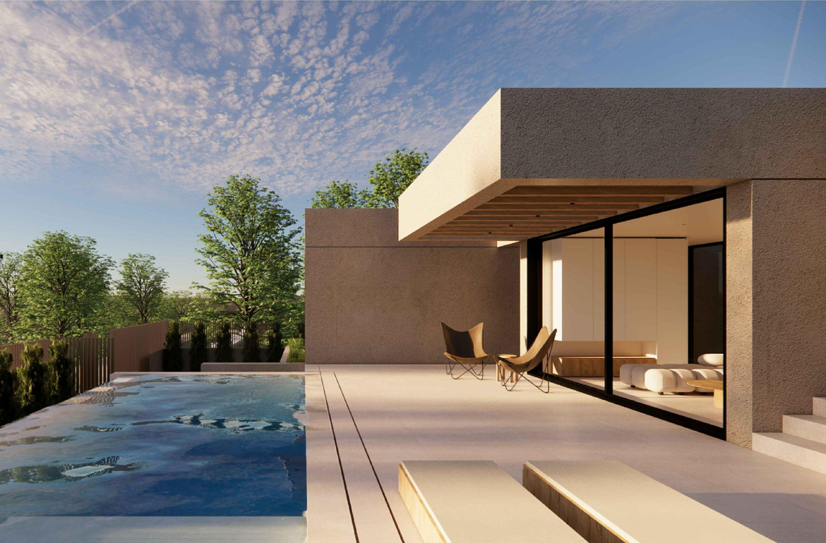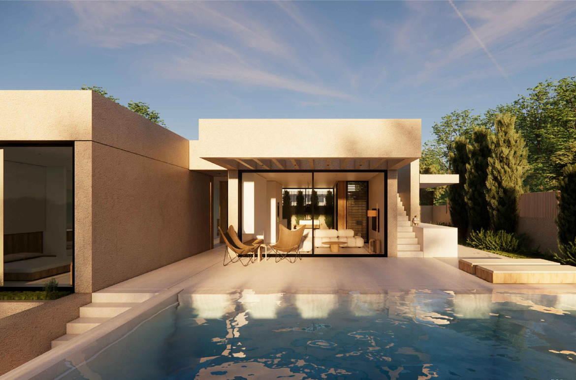 Nestled in the tranquil mountains of Polop, this sophisticated villa offers a perfect blend of modern minimalist design and serene natural surroundings. The residence is engineered with advanced reinforced concrete technology for long-term durability and features seamless architectural details like custom flush-to-wall doors that enhance its elegant interior lines. The main floor serves as the heart of the home, where an open-plan living area and a high-end kitchen with natural stone finishes connect effortlessly to a pergola-covered terrace and a private saltwater pool.