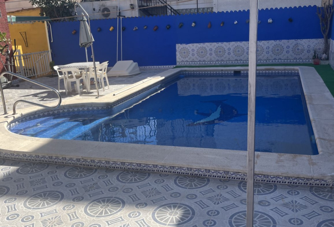 This spacious Villa, located beachside of the N332 in Punta Prima is split into two levels, with the lower level comprising a Kitchen-lounge-diner, with 2 bedrooms and a family bathroom. There is direct access to the terrace and the private swimming pool.