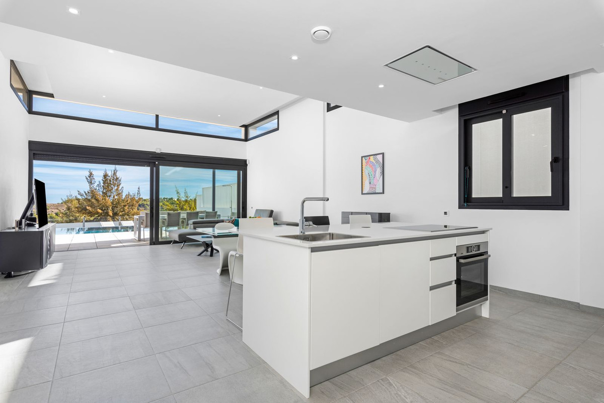 This luxury villa really is walk in ready and is waiting to wow you! This stunning villa is less than a 5 minutes’ drive from the vibrant town of San Miguel de Salinas where you can find all the amenities that you require. Sought after Spanish schools, 24hr medical centre, church square, banks, pharmacies, municipal pool, football ground and a fantastic selection of local and international bars and restaurants. As a Spanish town it celebrates the many colourful fiestas throughout the year and there is a weekly produce market on a Wednesday. If golf is on your agenda, then you will not be disappointed with the award winning Las Colinas golf course only a few minutes’ drive, and a further 4 prestigious golf courses less than a 10-minute drive. The fabulous sandy coast line of the Orihuela Costa is 12 minutes away by car as is a very popular and large shopping mall, Zenia Boulevard, where you can shop to your hearts content.