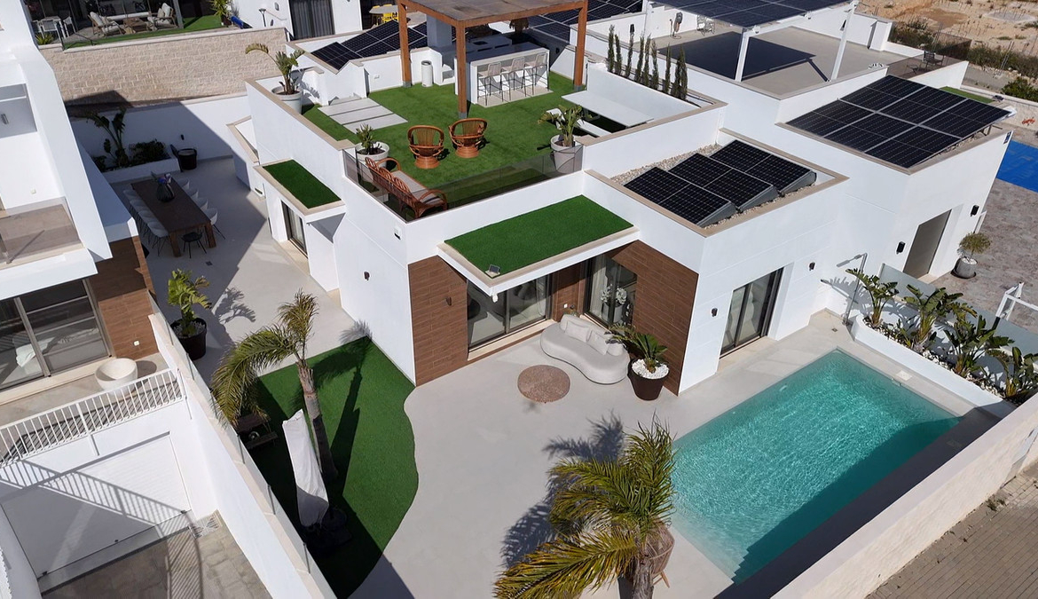 Set within a peaceful and exclusive residential area of San Miguel de Salinas, this exceptional three-year-old detached villa offers a refined blend of modern architecture, versatile living space, and energy-efficient design — perfect for those seeking comfort, privacy, and Mediterranean luxury.