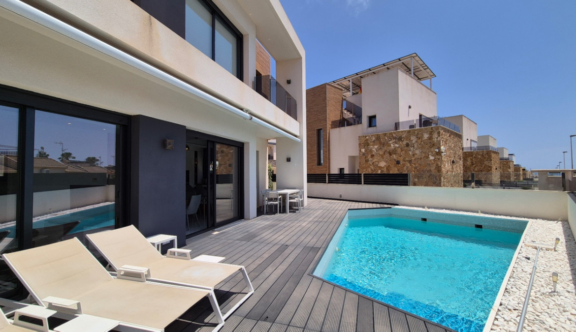 Modern villa with private swimming pool and off road parking.