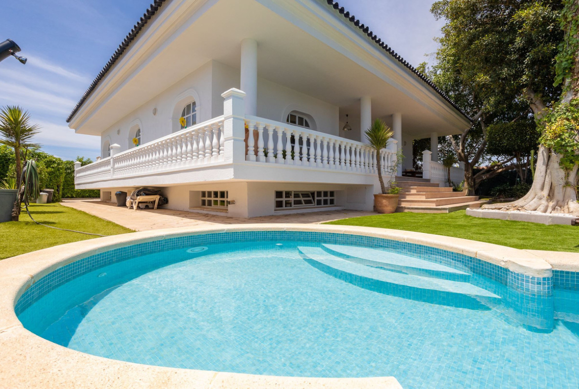 The villa has stylish and charming architecture at the same time as it has a good floor plan and a consistently pleasant flow of light. There is a private pool on the grounds. There are several balconies and terraces and plenty of space for outdoor furniture and lounge groups. Parking facilities in garage.