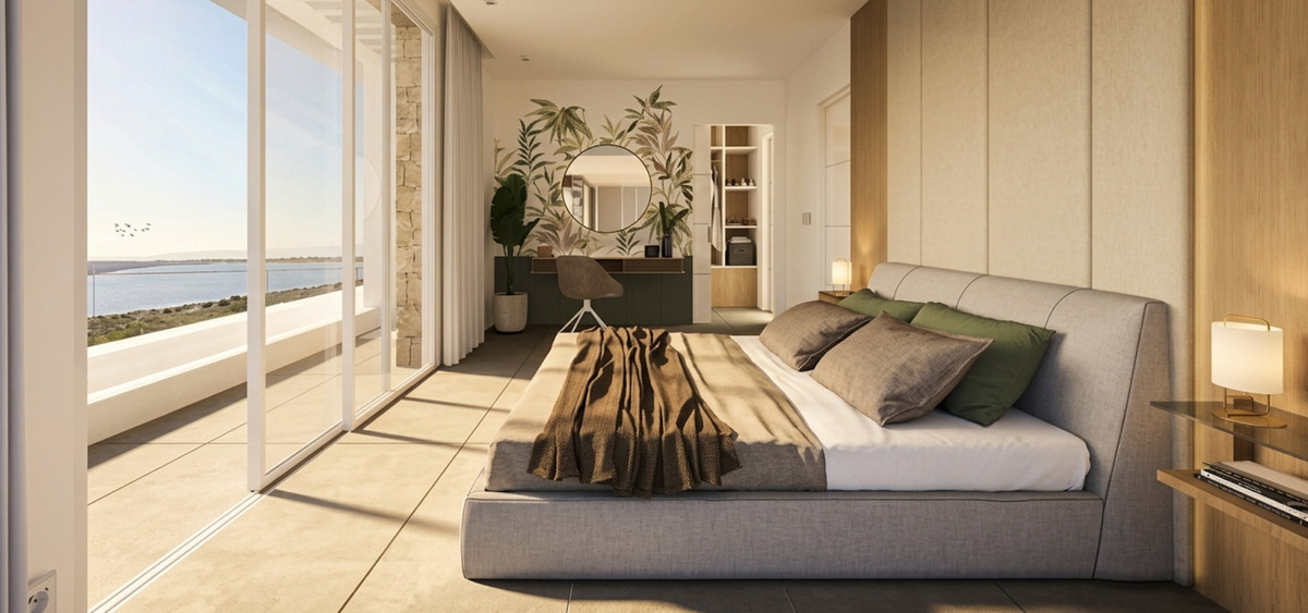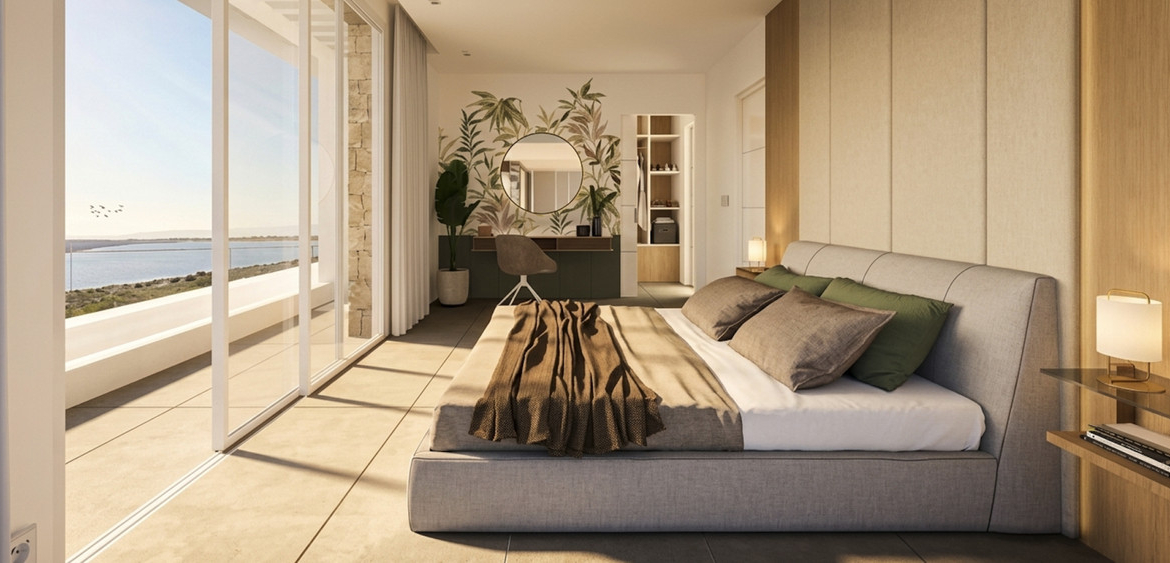 The properties are located in a quiet and low-density residential area, surrounded by walking routes along the salt lake. At the same time, shops, services, and restaurants are within walking distance. The lake itself is a natural phenomenon and one of the key reasons why this area benefits from a health-enhancing microclimate. The location offers tranquility away from the tourist crowds.