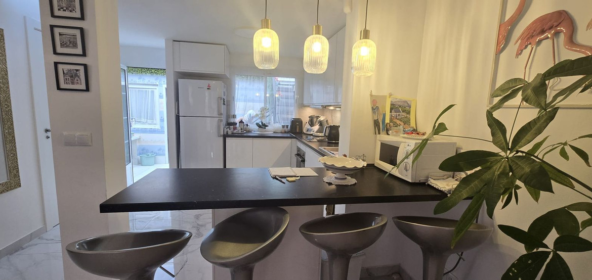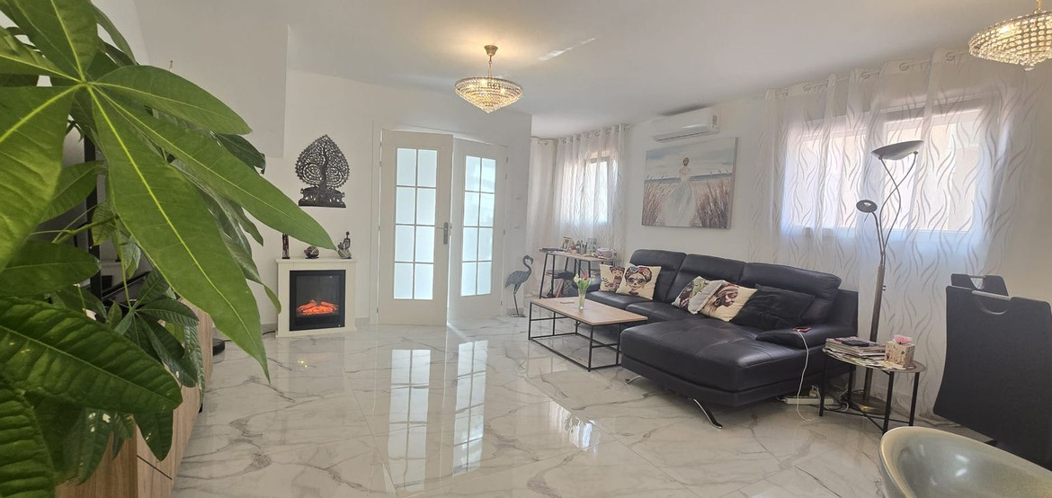 This is a two-story semi-detached house with a very comfortable layout. On the fully renovated ground floor, you will find a spacious living-dining room with open plan kitchen, one bedroom, a bathroom with shower and a covered porch with access to a private terrace, perfect for enjoying the Mediterranean climate. Upstairs, there are three bedrooms (one double and two singles) and a second bathroom.