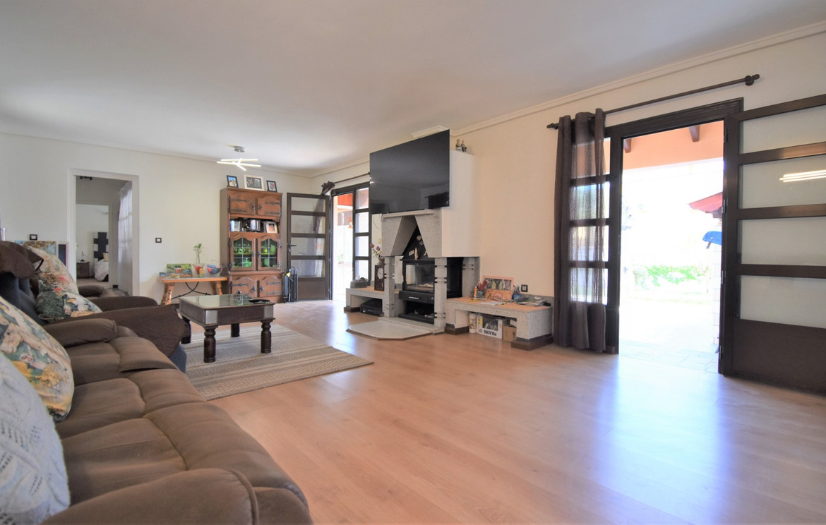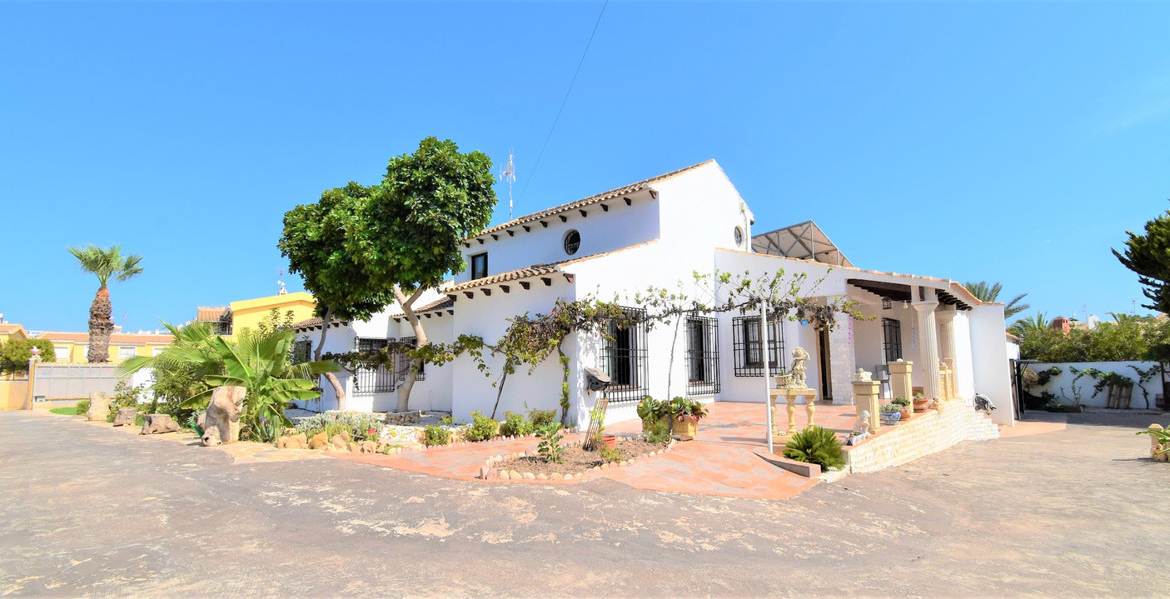 This South Facing, Absolutely Stunning, Four Bedroom, Detached Villa in Villamartin, is located just a couple of minutes drive from the Villamartin golf course and it's well known “plaza”. A ten minute walk to a local bar/restaurant and bus stop; ten minute drive to La Zenia Boulevard shopping centre and a further five minutes to the beaches along the coast. This stunning 325m2 villa offers such character, occupying a 1762m2 plot, comprising: two sets of double opening doors lead into the living area with ornate feature fireplace, square wide arch leads to the dining area; separate modern style fitted kitchen; utility room; three double bedrooms, two with built in wardrobes, master with access out to a terrace area and en suite shower room, family shower room. The first floor benefits from a double bedroom with fitted wardrobes, access to a terrace and en suite shower room. Internal access provides access up to the solarium. Outside there is a lovely covered spacious terrace area, mainly glazed in and looks right over the private salt pool which has grassed garden and tiling surrounding; room with water tanks for garden irrigation, shrubs, bushes, external covered kitchen area, ample parking possibilities, including a car port. Extras include a bodega in the underbuild which has external acces, feature beamed ceiling through most of the rooms, solar panels running the hot water.