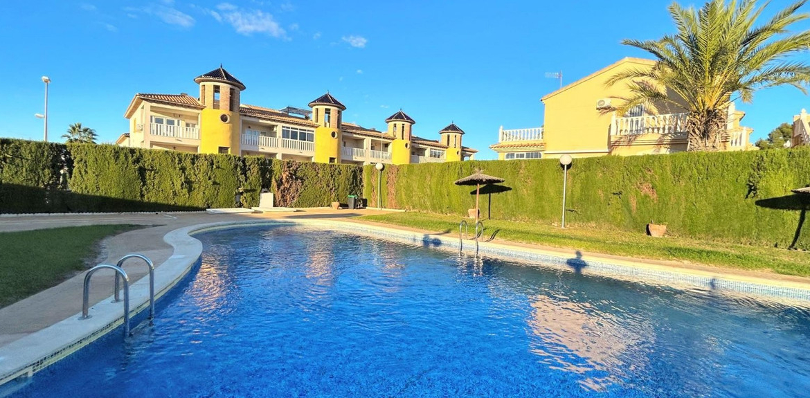 The townhouse is part of a peaceful and well-kept community with access to two attractive communal swimming pools, ideal for enjoying the Mediterranean climate.
