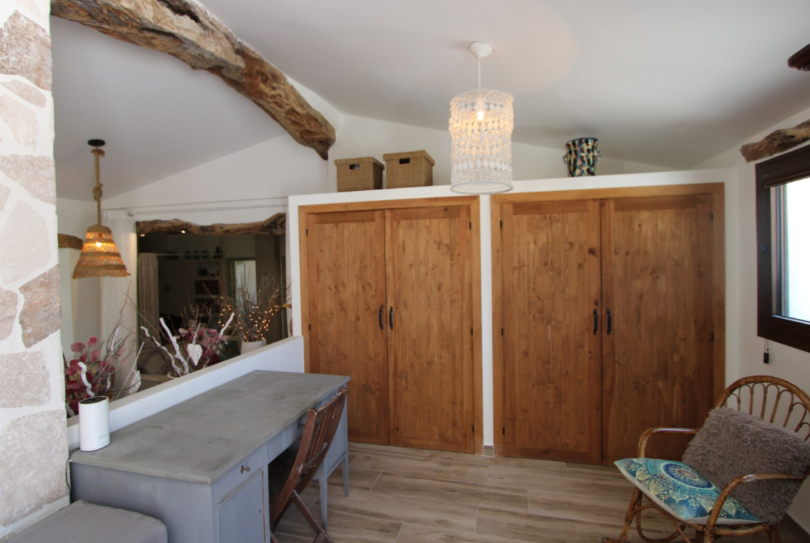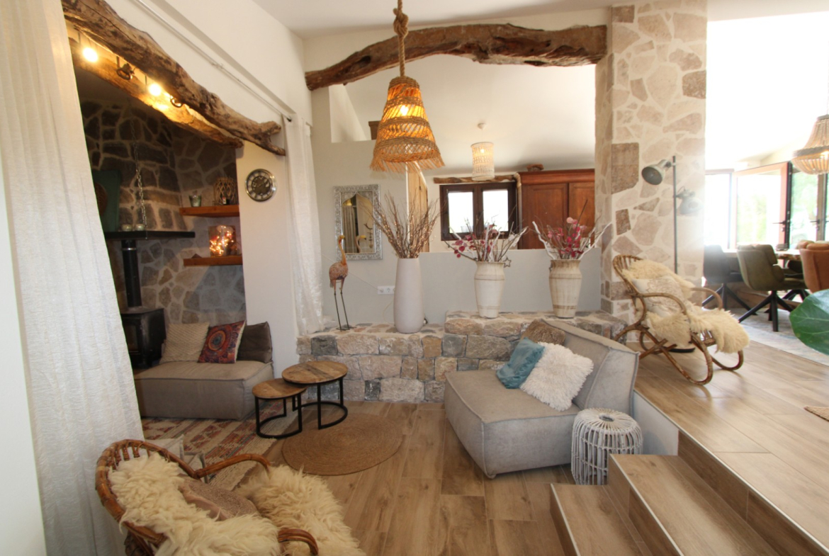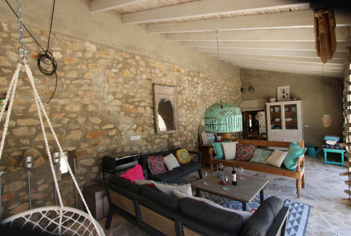 A truly spectacular totally modernised finca with real charm and character. This beautiful country property is in a very private location but still only a few minutes walk from the centre of Alcalali and only 2 or 3 minutes from local restaurants. It is a single storey property with minimal steps and situated on flat plot making it ideal for clients with possible mobility issues. There is a car port for 2 cars but parking for a large number of vehicles in front of the finca. This property is unique and finished to a very high quality. Outside the riu ruas have been completely refurbished to give a superb outside living area to enjoy the warm Spanish evenings and there is also a covered fully fitted outside kitchen. Patio doors lead into a magnificent open plan living area with a large dining room, separate sitting areas and large open plan, fully fitted, kitchen. This is a very large open living space with real character and, unusually for finca properties, is also extremely well lit with natural light. Patio doors lead from the kitchen to a totally private large terrace area which includes a jacuzzi. In addition there are 3 double bedrooms and 1 single bedroom, plus 1 shower room and 1 bathroom. There are hot/cold A/C units throughout plus a wood burning stove and double glazed throughout There is also another sitting area at the rear of the house plus a mirador on the roof with spectacular views of the Jalon valley. This is without doubt one of the nicest fincas I have seen in a long time and ideal for anyone looking for a property with all the modern amenities but still retaining its original rustic charm