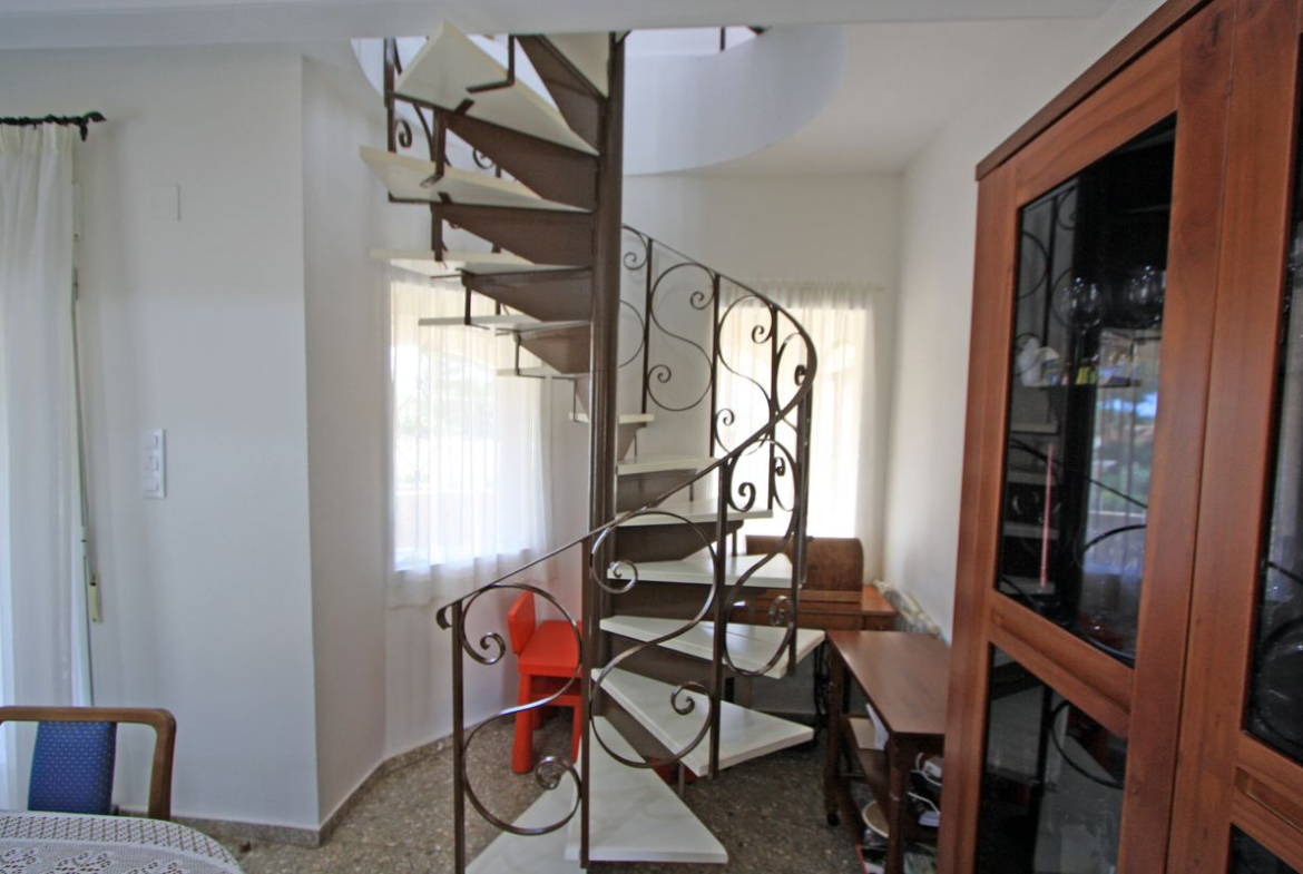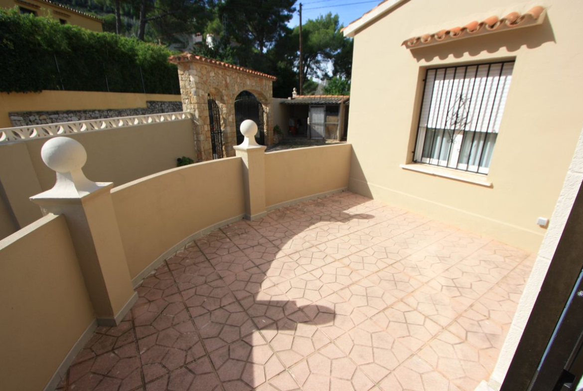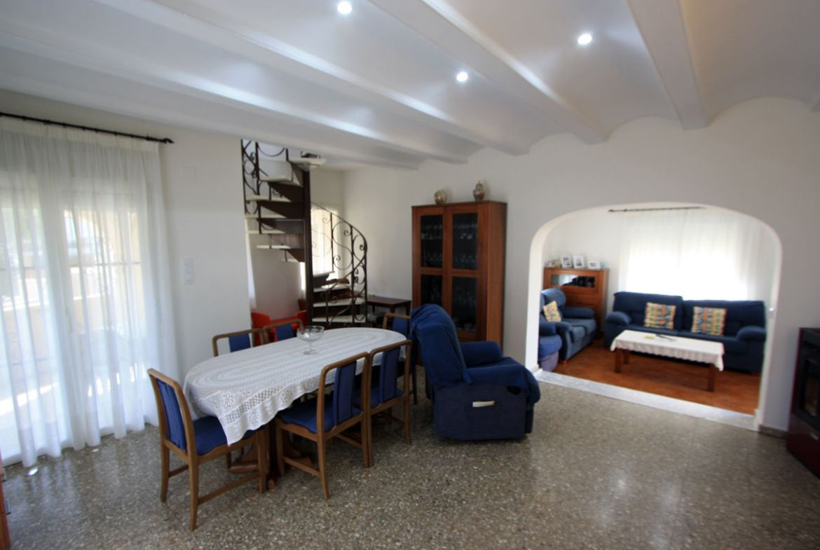 For sale is this magnificent villa with views of Montgó in San Juan area, Dénia. A plot of 776 m2 houses the property with the following layout: Ground floor: Spacious living-dining room with fireplace, access to a covered terrace, kitchen, 2 double bedrooms, one of which has an en-suite bathroom, and another bathroom. An interior spiral staircase from the living room leads to the large bedroom of 25 m2 with a balcony. Outside there is a storage/laundry room and another room that could easily be converted into a fourth bedroom or used as an art or music studio, etc. Good finishes: Aluminum, PVC windows with double glazing, mosquito nets, individual cold-heat air conditioning, pellet fireplace in the living room, etc. Recently renovated, everything is in perfect condition and partially furnished. The property does not have a pool but there is space to build one measuring 8 x 4 m or even 10 x 5, there is plenty of room. It has a carport for 1 vehicle and parking. Very quiet residential area, inhabited year-round, just 3 km from Dénia and its beaches.
