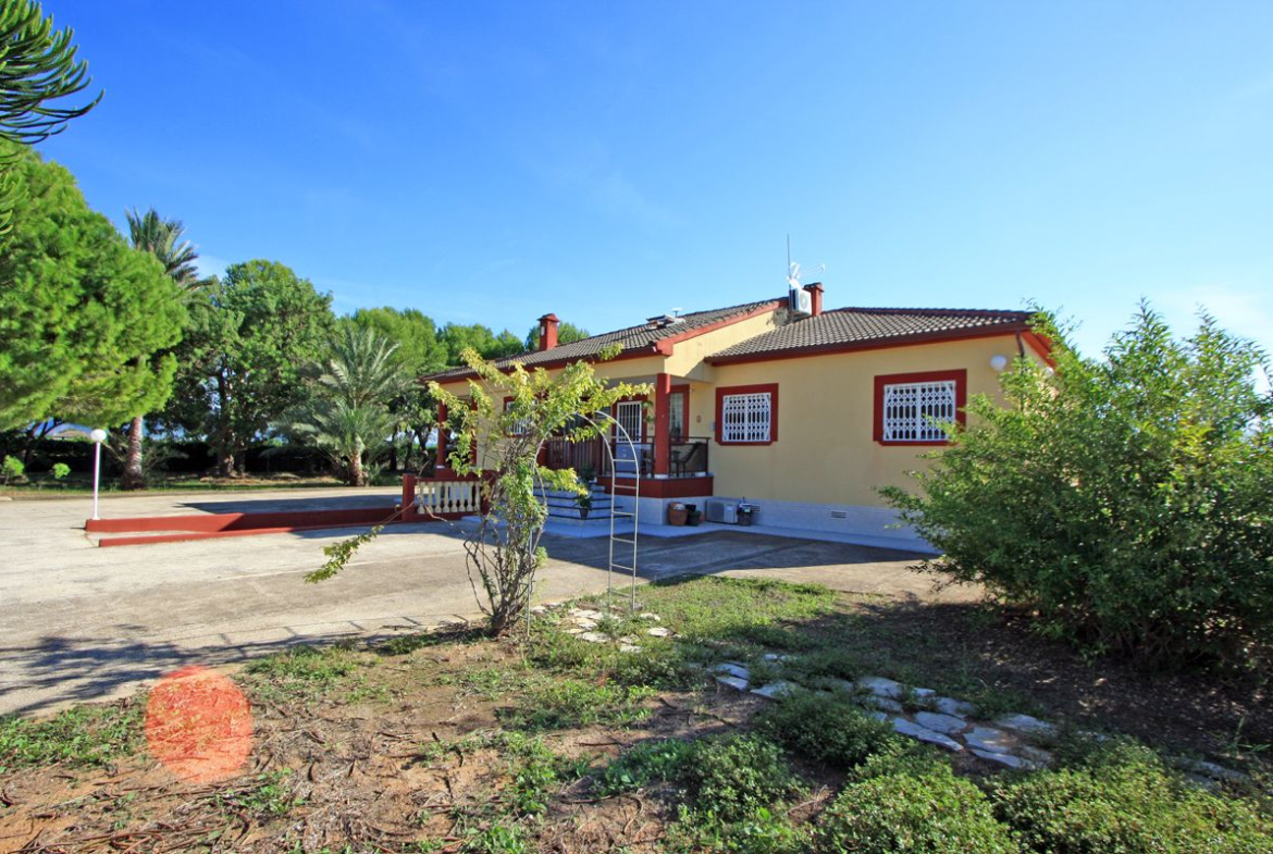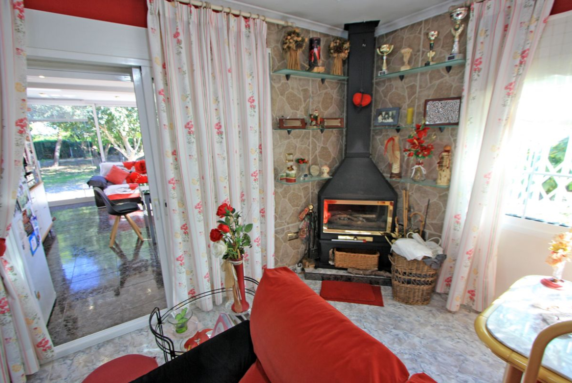 For sale this magnificent finca/villa on a completely flat and fenced plot of 11.310 m2 in Els Poblets at only 400 m far from the beaches of Las Marinas in Dénia. Entrance to the finca through 2 automatic gates, ample parking (some covered) next to a nice pine forest and the house with the following distribution: Entrance hall, living – dining room with fireplace, exit to a glazed terrace fitted out as another living room, separate kitchen with utility room, 3 bedrooms with built-in wardrobes sharing 1 bathroom and the 4th master bedroom with bathroom en suite with hydro massage and also with built-in wardrobes. By interior staircase we can leads up to the attic of 58 m2 which can be used as a third living room or office/work area. By the same staircase we leads down to the basement, where there is a large garage for 3 cars, several motorbikes, work area, laundry room and 1 toilet. The property also has a formidable swimming pool of 15 x 5 m next to a wooden house (9 x 5 m + porch of 6 x 4 m) with 1 bedroom, 1 bathroom, living-dining room-kitchen with potential for summer rental. All of the latter is on +- 5.500 m2 of land, the other 5.800 m2 are separated with a wall and is perfect for keeping horses, heliport, parking for caravans etc… It should be noted that the property has mains electricity, satellite tv, internet and well drinkable water (not town water) which is always available at a cost of 0 € and only the maintenance of the extractor pump. Very quiet area with no noise and in the middle of nature. Ask for more information without obligation.