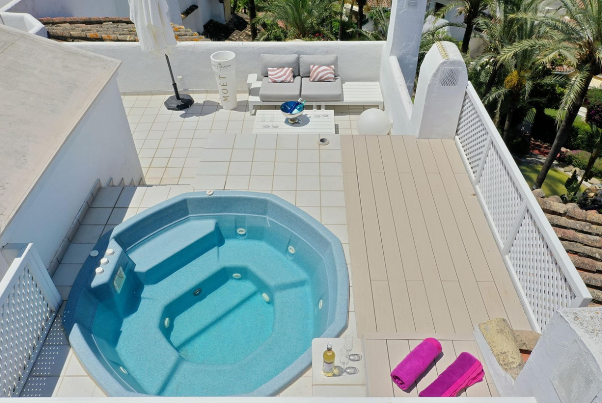 • Just 80 meters from the renowned Golden Beach (between El Rosario & Elviria)• 150 meters to Estrella del Mar Beach Club (5-star spa, gym, sauna, heated indoor & outdoor pools)• Top-tier dining within walking distance: