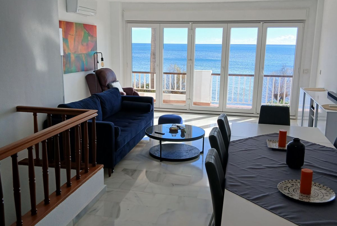 A large and spacious duplex apartment situated on the beachfront to the west of Estepona, offering direct access to the beach. Comprising of 5 bedrooms and 4 bathrooms over 2 floors. On the upper floor, there are 2 bedrooms and 2 bathrooms, (Master bedroom with ensuite bathroom, kitchen with laundry room, living room / dining room area with panoramis sea views and a terrace to enjoy them. On the lower floor, there are a further 3 bedroom and 2 bathrooms, open plan kitchen with living room and dining area. There is a large terrace on this level and direct access to the promenade and beach. This level has independent access and can be closed off from the upper floor, meaning that it can be rented independently from the upper level. The property is in possession of a short term rental license (tourist license) and has been very successfully rented previously. A sound investment property with spectacular sea views.