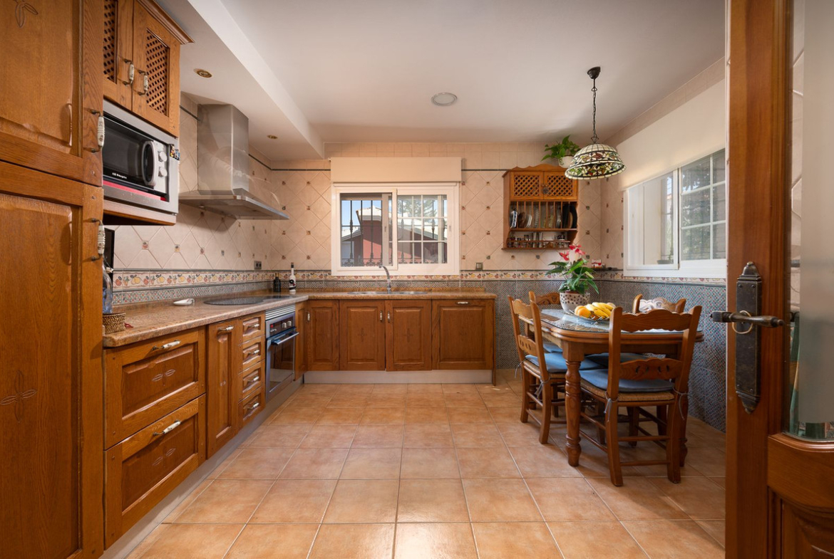 Beautiful large family home which can be divided into separate dwellings if needed. The villa is situated in a quiet very well respected neighbourhood in walking distance to shops, park, public transport. Its location is excellent for access to main roads leading to Malaga city, the vast growing business centre and industrial areas, the beaches, public and private schools. Despite its vicinity to all of these, the villa offers open panoramic views and tranquility. It has underfloor heating throughout the upper floor for the cooler winter months and air conditioning for use if required for the rest of the year. The pool, garden and its barbecue area offer a great space for gatherings and entertainment.