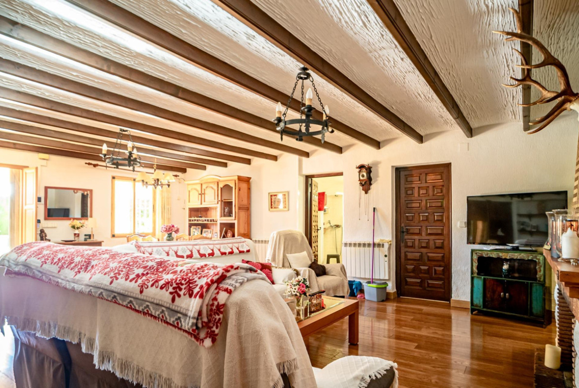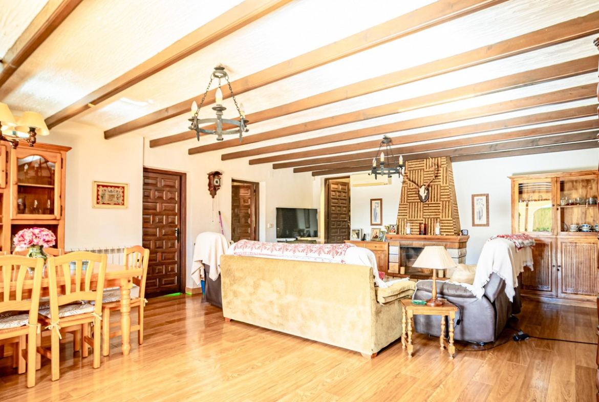 This villa is a large and ideal home for a family. On the ground floor there are two bedrooms, a spacious living room with a fireplace, a bathroom with shower, and a kitchen. This floor has its own independent entrance and can be used as a separate apartment. There is also a large garage on this level.