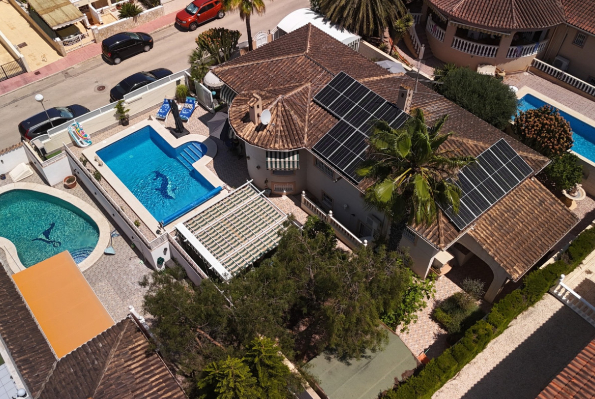 p><strong>New in our offer: a spacious and comfortable villa at walking distance from the center of Benijófar.</strong> This beautiful detached house offers you everything for a relaxing life under the Spanish sun. Located on a generous plot of <strong>500 m²</strong>, this villa features <strong>5 bedrooms</strong>, <strong>3 bathrooms</strong>, a <strong>private heated pool</strong>, <strong>solar panels</strong>, an <strong>outdoor kitchen</strong> and many more luxury amenities.</p>