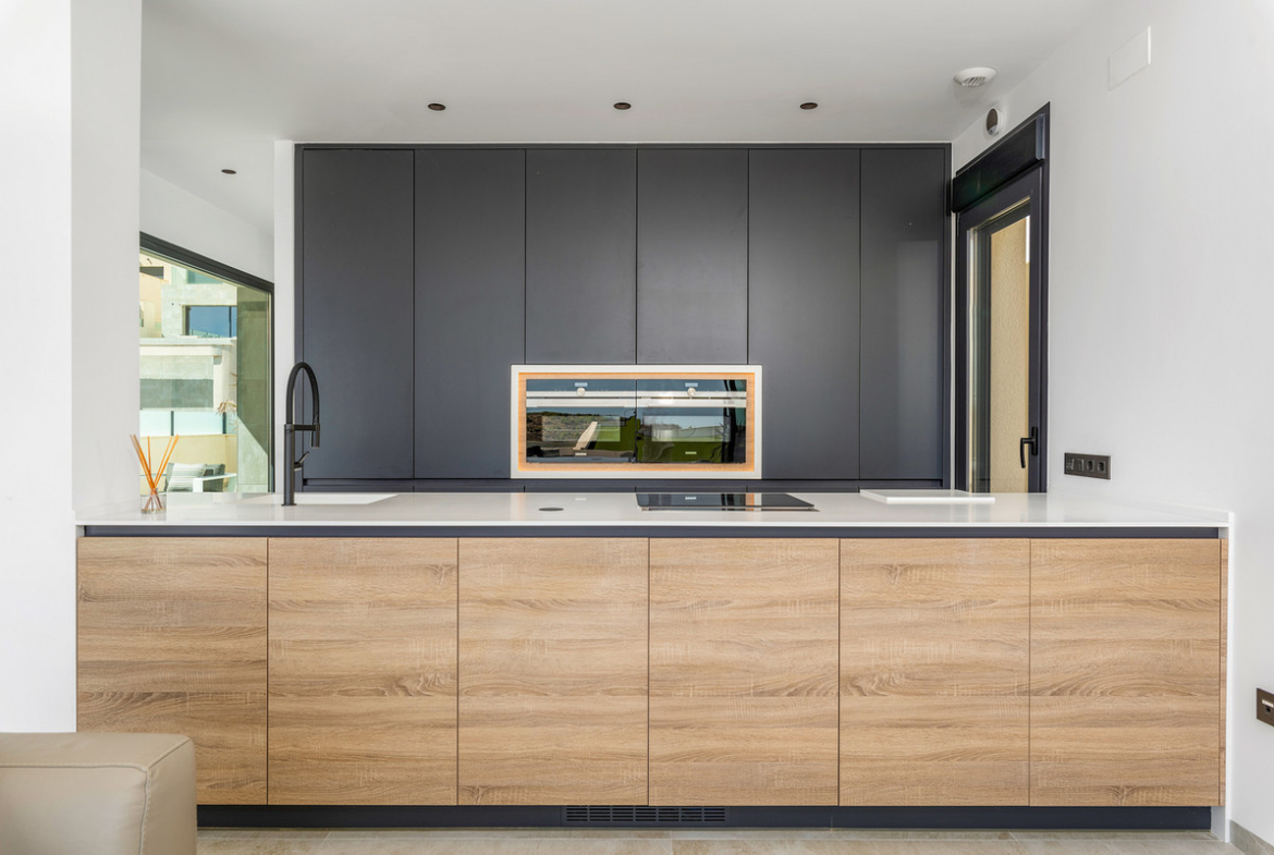 Outdoor areaThe villa is set on a lovely corner plot of 462 m2. The pool area is east facing, giving you amazing views over the surrounding area and to the sea. Around the pool you have a beautiful tiled area with space for several outdoor seating areas and sun beds. From the pool area you have external stairs leading you to the large roof terrace. Here you have one part that is tiled and the other part with artificial grass, both of them with a lot of space for outdoor entertainment and with amazing views. At the entrance to the house you have another lovely tiled garden area that faces west. This area is perfect to enjoy the afternoon / evening sun. At the lower level you can find a large tiled patio with an artificial vertical garden. This patio can be access from the garden through external stairs, and also from the living room and 2 of the bedrooms in the lower level.