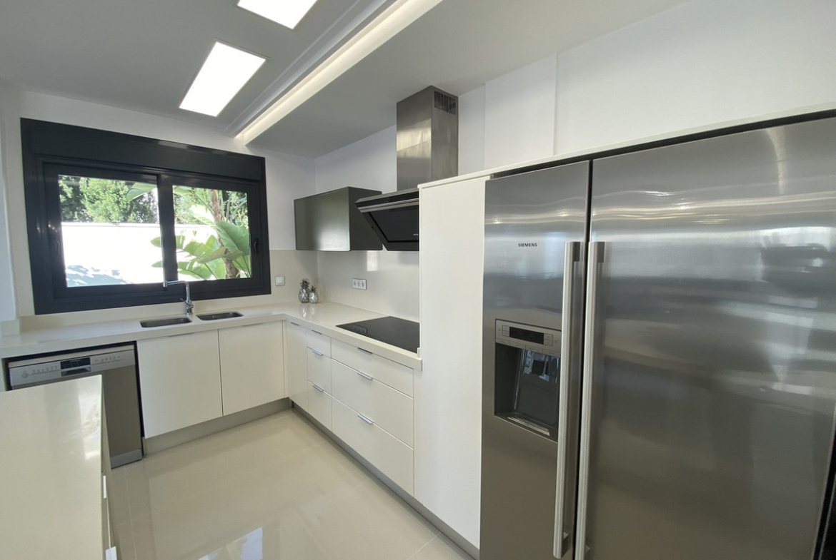 Welcome to this exceptional recently-built luxury villa at Residencial Bellavista, San Miguel de Salinas, offering a harmonious blend of contemporary design and breathtaking views. With a total of 5 bedrooms and 4 bathrooms, this meticulously crafted property spans two floors and a basement, accessible via a convenient elevator and a stunning glass staircase with interior lighting.