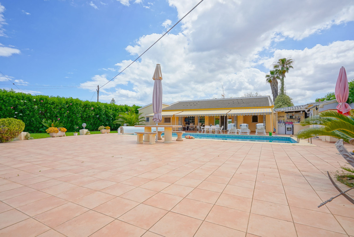 This villa is located on a flat, sunny plot of 2000 m², near the village center of Els Poblets and just one km from the beach. The villa is divided into two houses that are connected but each has its own access.