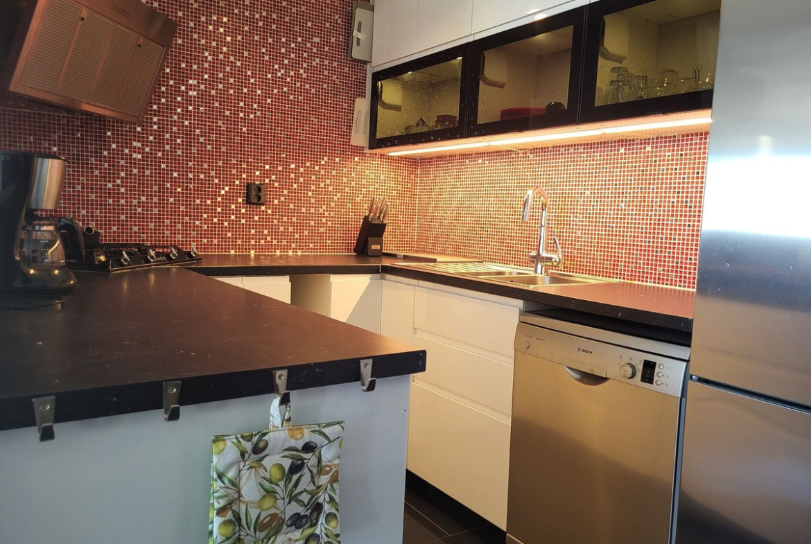 Spanning 120 m² built (100 m² usable) on a generous 4,500 m² plot, the property comprises two modern apartments and features five bedrooms, two bathrooms, a bright living area with a cosy wood-burning stove, fully equipped kitchen, storage room, garage and chicken coop. Elegant marble floors, built-in wardrobes, individual heating and air conditioning ensure year-round comfort. The large terrace is perfect for al-fresco dining, while the standout organic garden is a true delight: mature olive trees, kaki, figs, avocado, lemon, orange, grapefruit, clementine, blood orange, blackberries, pear, apple, quince, plum, cherimoya, mango, walnuts, almonds, bay laurel, lemon verbena and more – plus a thriving vegetable patch.