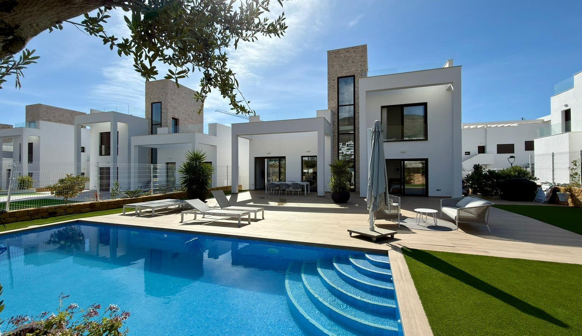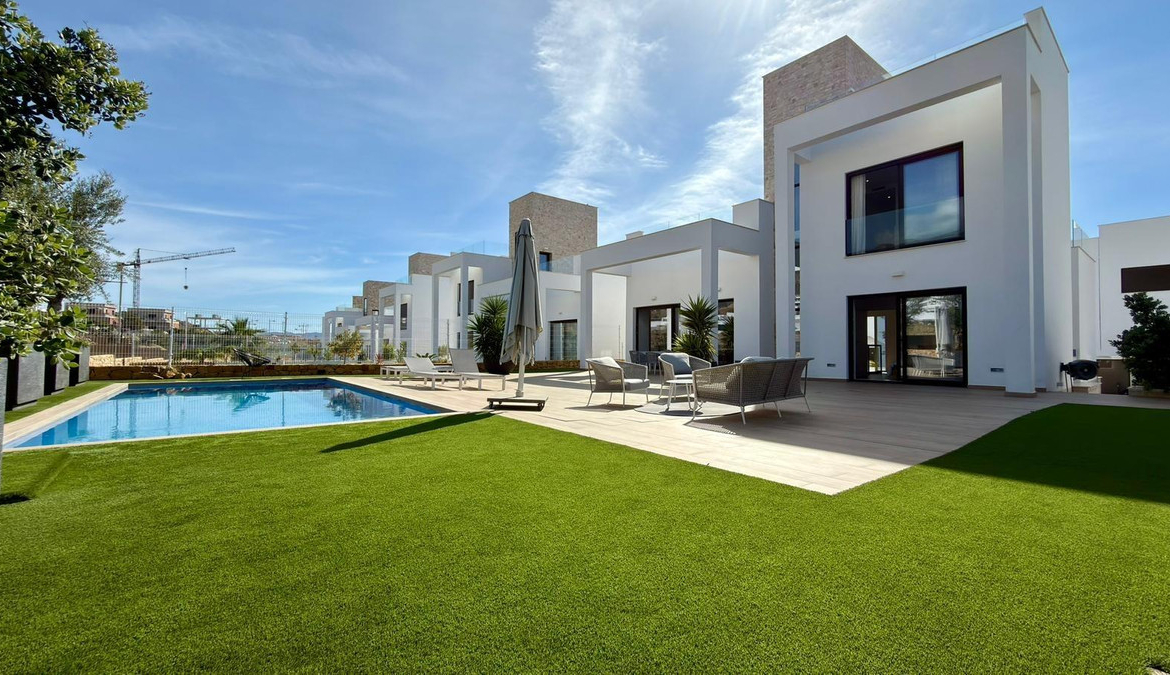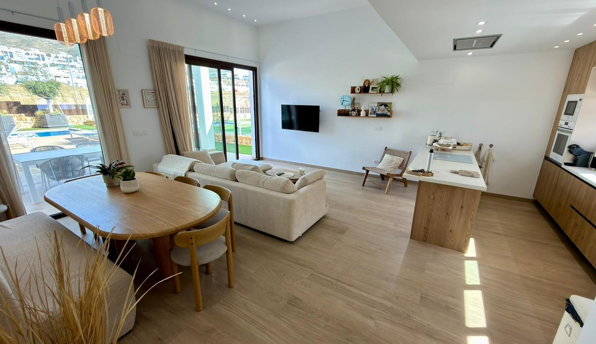 ???? Modern villa for sale in FinestratDiscover this spectacular villa located in a quiet gated community near Benidorm and a short distance from the famous Playa de Poniente. A perfect property to enjoy the Mediterranean lifestyle with space, privacy and comfort.???? The villa is built on a 500 m² plot and offers 245 m² of built area distributed over 3 floors, with spacious interiors and several terraces to enjoy the sun and outdoor living all year round.???? 5 double bedrooms???? 4 full bathrooms???? Spacious living area and relaxation spaces???? Several terraces to enjoy the outdoors???? Outside you will find a beautiful private garden and a 40 m² private swimming pool, perfect for relaxing or sharing moments with family and friends.✨ The villa is sold fully furnished and equipped, ready to move in, with modern features such as:❄️ Aerothermal energy system???? High-end appliances???? Complete furniture package???? Built in 2024, the property is in perfect condition and ready to welcome a family to enjoy it from day one.???? The property is part of a private residential complex with excellent communal areas:???? Paddle court???? Communal swimming pool???? Children’s playground???? Excellent location???? Commercial area only 15 minutes walking distance???? 3 km from Playa de Poniente in Benidorm☀️ Quiet environment with all services nearby???? A modern, spacious villa ready to enjoy, perfect as a family home or second residence on the Costa Blanca.