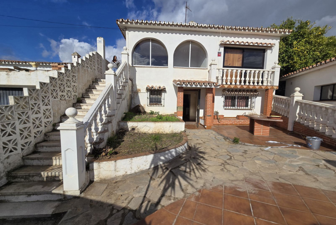 The main home has two entrances and several parking spaces, two of them covered. Inside, it offers three bedrooms, two bathrooms, a separate kitchen, a large living room, and a glazed terrace with sea views, ideal for year-round enjoyment.