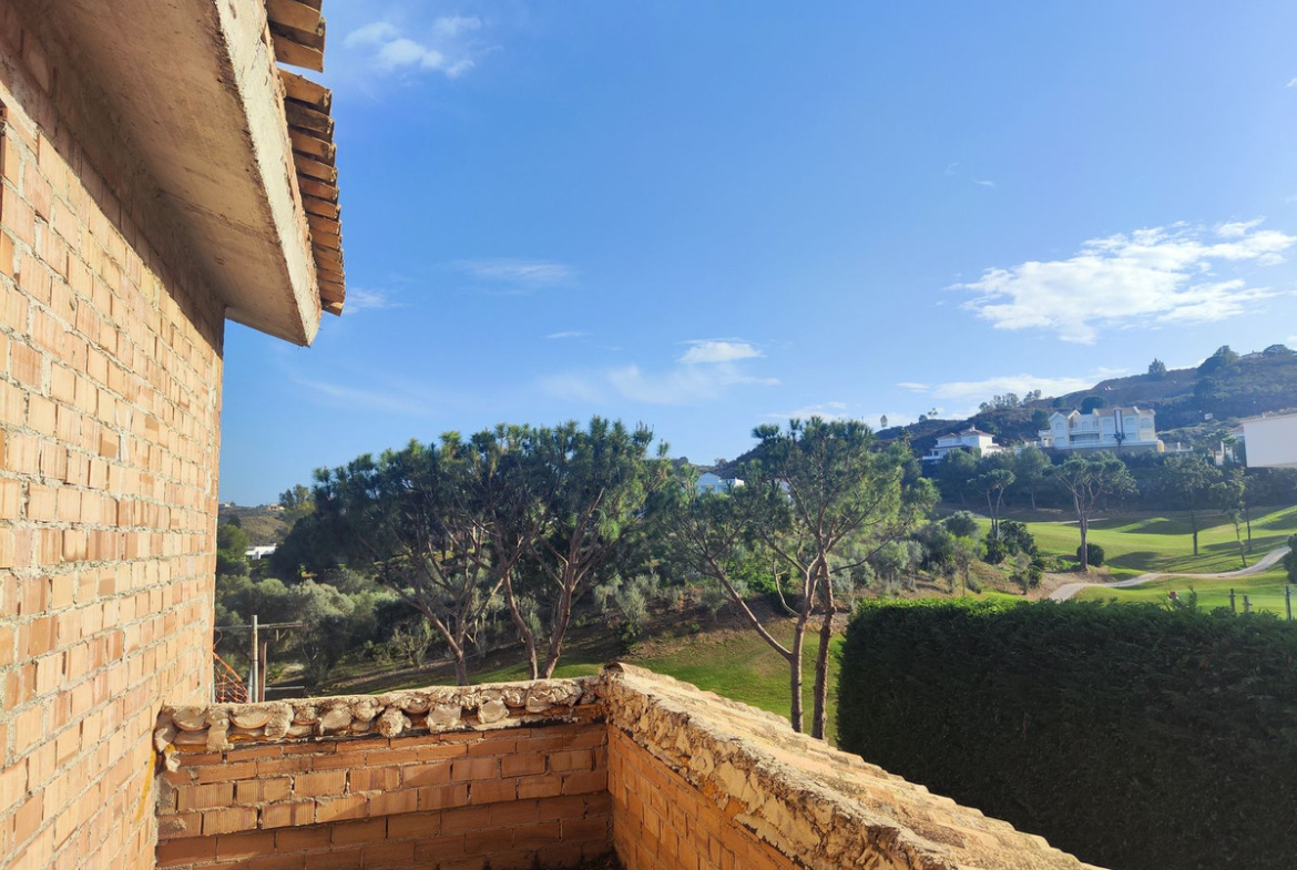 INVESTMENT OPPORTUNITY. This unfinished golf front villa overlooking the fairways and lake of hole Nº6 of Asia course in La Cala Golf resort, is an excellent opportunity. Under construction, for sale as the villa is with an estimate cost to complete the construction of about 600.000€. The villa will welcome you with an entrance hall giving access to large living and dining room leading to a sunny terrace with wonderful golf views and with access to the pool area, very large open-plan large kitchen, 2 double bedrooms, 1 family bathroom + 1 guest toilet on the main floor. The top floor is home to the impressive master suite with vaulted ceiling, wall-to-wall bay-window, private terrace + balcony with commanding views, large en-suite bathroom with bath and walk-in-shower. The 160m2 of the lower floor offers a wide range of possibilities for converting it to suit your needs, such as 2 bedrooms, 1 bathroom, 1 gym or TV room, 1 laundry room,+ plenty of storage space… Large L shape infinity swimming-pool overlooking the fairways, platform prepared for a beautiful pool house, large space for landscaped garden. This could your perfect house. Contact us