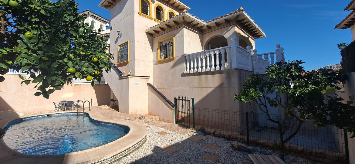 Exquisite Renovated Villa in the Heart of La Zenia, we are thrilled to present this beautifully renovated villa, perfectly situated in the vibrant area of La Zenia. Offering a seamless blend of modern comfort and convenience, this property is ideal for those seeking a prime location just minutes away from amenities and the popular La Zenia Boulevard. Prime Location: Just a 2-minute walk from La Zenia Boulevard, surrounded by bustling commercial hubs, restaurants, and entertainment options. Conveniently located between the lively areas of Playa Flamenca and La Zenia, making this the perfect spot for dining, shopping, and enjoying all the attractions of the Orihuela Costa. Main Villa: -South-Facing Terrace: Upon entering the villa via the external stairs, you're greeted by a spacious south-facing terrace that connects to the living and dining area through patio doors, flooding the space with natural light. Living & Dining Area: An inviting open-plan layout that provides a bright and spacious environment for relaxation and entertaining. Fully-Fitted Kitchen: The kitchen is well-equipped to cater to daily needs. Bedrooms & Bathroom: Two generously sized double bedrooms and a modern bathroom featuring both a bath and shower. Upper Level: Accessible via external stairs, the upper level boasts a private solarium, ideal for sunbathing, relaxation, or hosting social gatherings. An additional bedroom and bathroom on this floor provide extra comfort and privacy for guests or residents. Includes a renovated underbuild apartment on ground level which has been renovated into a fully self-contained 2-bedroom apartment. Living & Dining Area: Spacious and bright, perfect for extended family or visitors. Kitchen: A functional and modern kitchen area for added convenience. Bedrooms & Bathroom: Two large double bedrooms and a generous bathroom featuring a bath, shower, and WC.Outdoor Space: The villa offers a low-maintenance garden, perfect for enjoying the outdoors with ample seating areas to relax in the sun. A private pool adds to the property's appeal, offering a refreshing escape during the warm Spanish summers. This exceptional detached villa combines luxury, location, and flexibility, making it the perfect choice for anyone looking to enjoy the best of La Zenia and the surrounding area. Viewing is highly recommended to appreciate all the features this property has to offer. Contact us today to arrange your viewing!