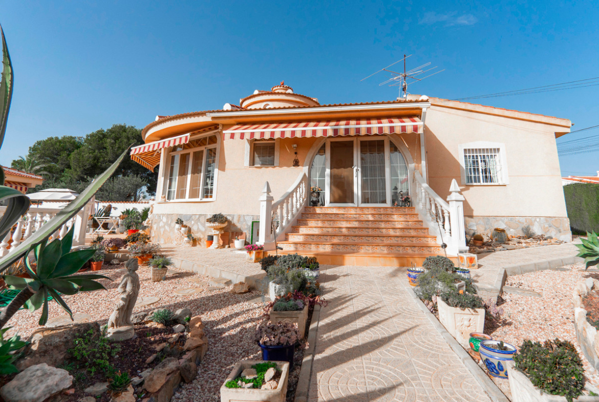 This spacious bungalow sits on a generous 1,084m² plot and offers excellent build quality, bright interiors and superb outdoor living. Designed on one level, it is ideal as a family home or a substantial holiday retreat, with plenty of scope for future extensions thanks to the size of the plot.Originally built for Swiss buyers, the property benefits from upgraded construction including gas central heating, damp-proof course and cavity wall insulation—rare features in Spain. The home is in very good condition throughout.