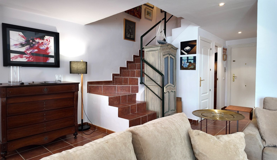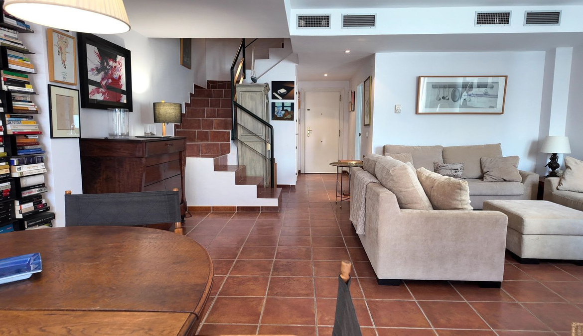 On the top floor, stairs lead to a very spacious master bedroom with en-suite bathroom and a third private terrace. The urbanisation does not permit short-term rentals, ensuring a quieter environment throughout the year without the seasonal overcrowding common in many beachside communities.
