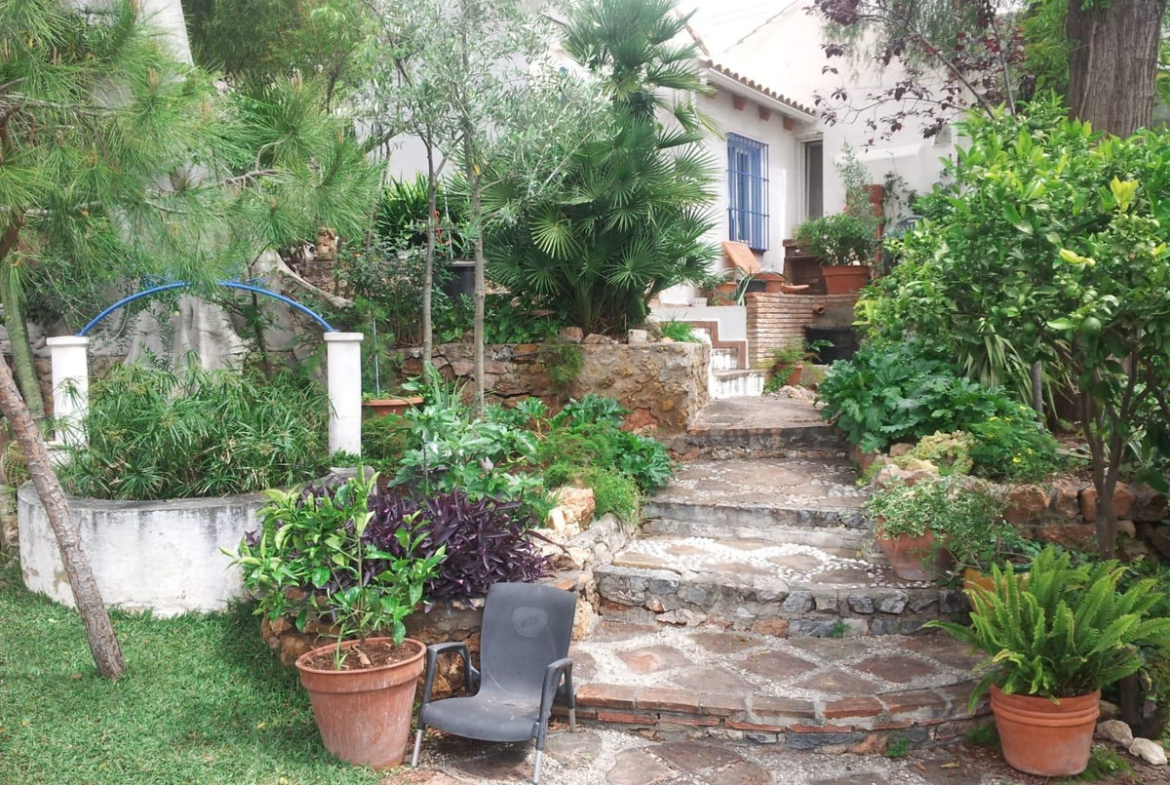 The main house features 3 bedrooms, 1 full bathroom, and a guest toilet. Upon entering the property, a staircase leads to a charming patio, from which there is access to the kitchen and a hallway distributing the bedrooms. The property also offers a spacious and bright living room with sea views and direct access to the garden.