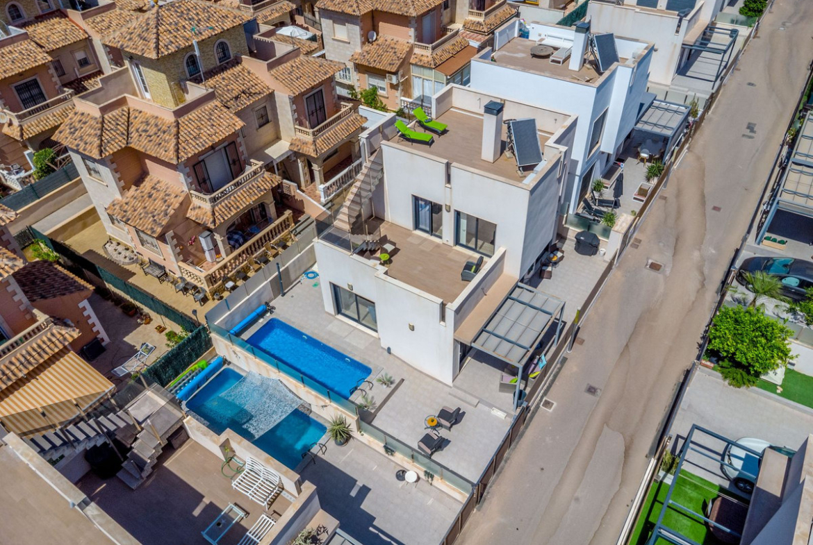 This is truly a gorgeous modern villa with 5 bedrooms and 3 bathrooms, with spacious plot and inviting terraced private pool, designed for the modern family.