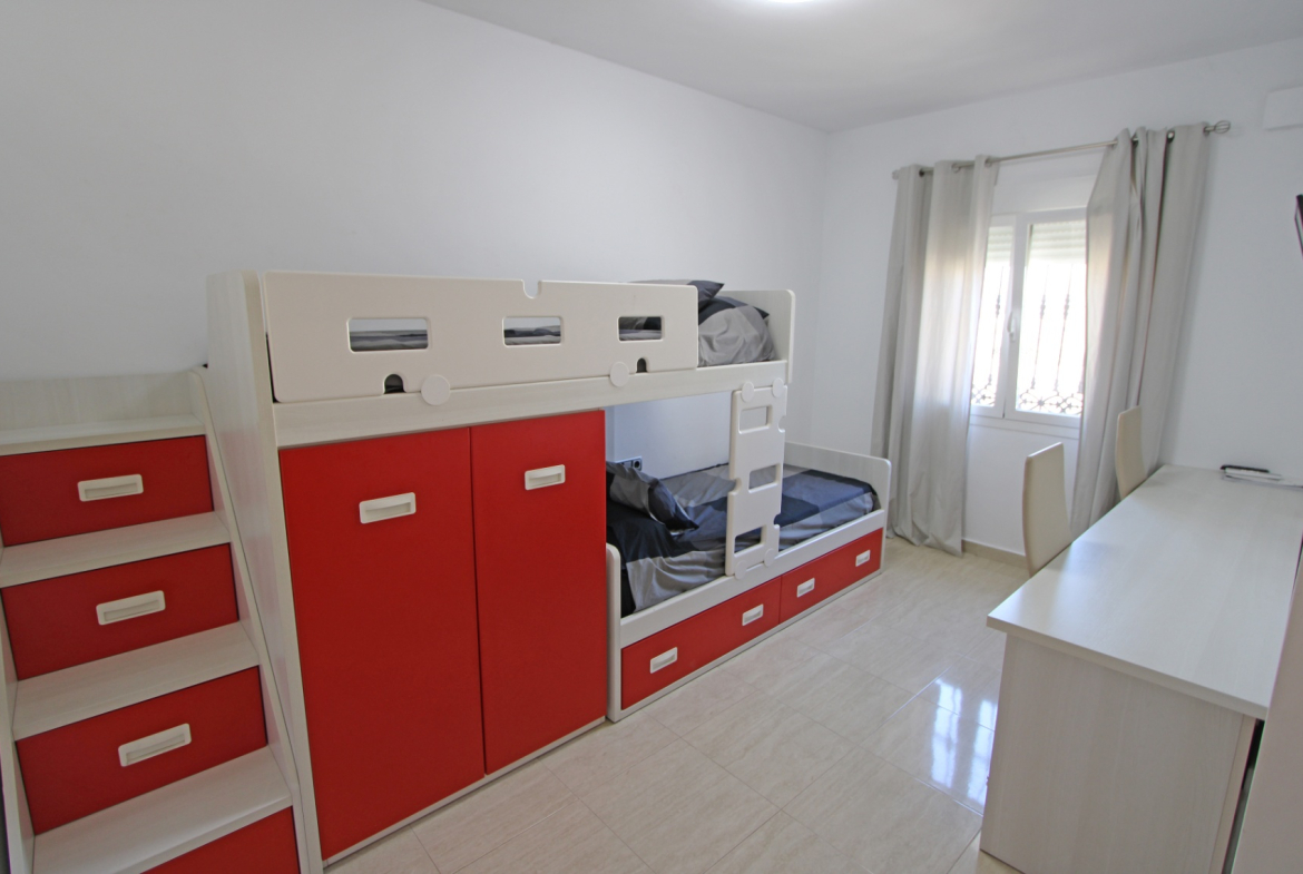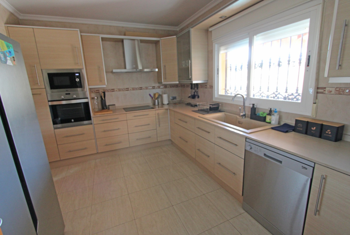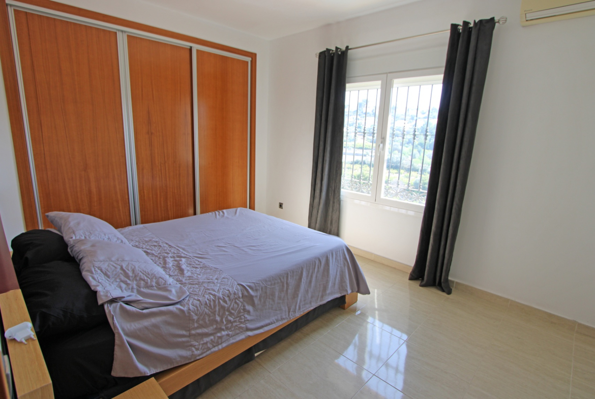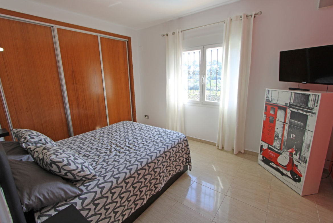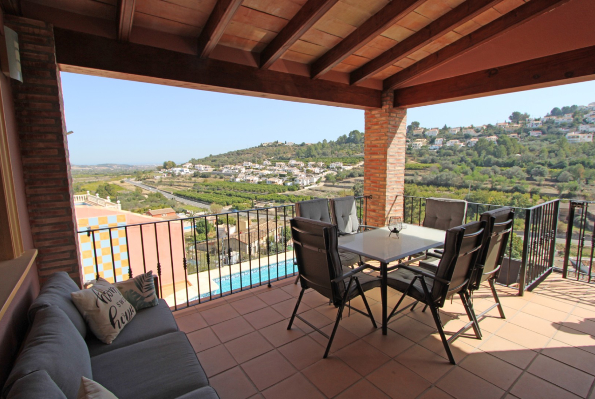 Villa with fantastic views for sale in Orba (Costa Blanca). The villa consists of two floors with the following layout: The upper floor is distributed in an entrance hall with wardrobes, 3 bedrooms with fitted wardrobes and a bathroom. The ground floor consists of a living-dining room, a separate kitchen, a guest toilet, a covered terrace, 2 bedrooms with fitted wardrobes and a bathroom. In the house there are also extras such as 5.6Kw solar panels, air conditioning, oil central heating, pellet fireplace, barbecue, TV/Sat, double glazing, alarm system, ADSL possible fiber, laundry room, garage for one car, 8 x 4 swimming pool and outdoor shower. This villa has already a tourist license. The property is located very close to all services such as supermarket and restaurants. The nearest beaches are 15 minutes away. The largest shopping centre in the area is in Ondara about 10 minutes away by car as well as the motorway to Valencia (1h) and Alicante (1h). This property is ideal either as a holiday home, for holiday rental or for permanent living.