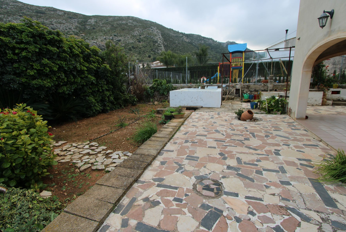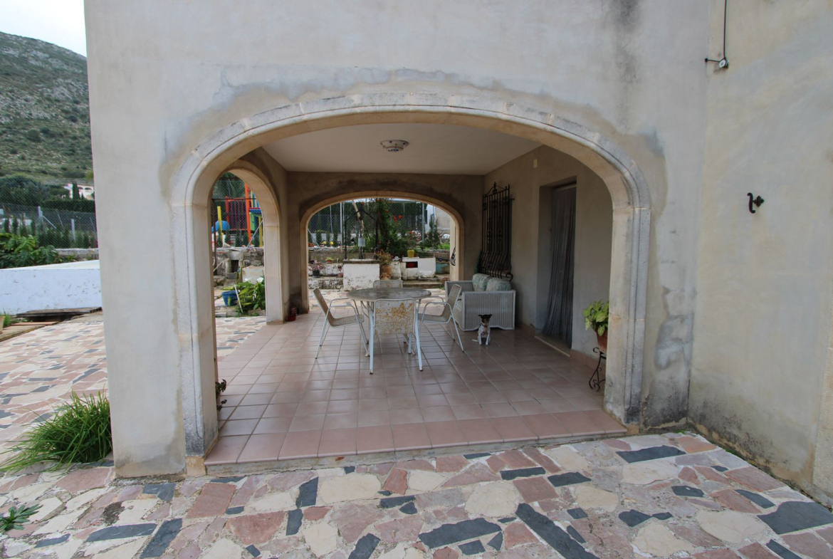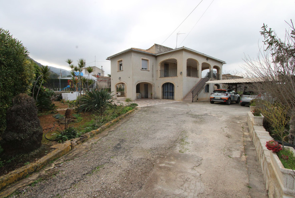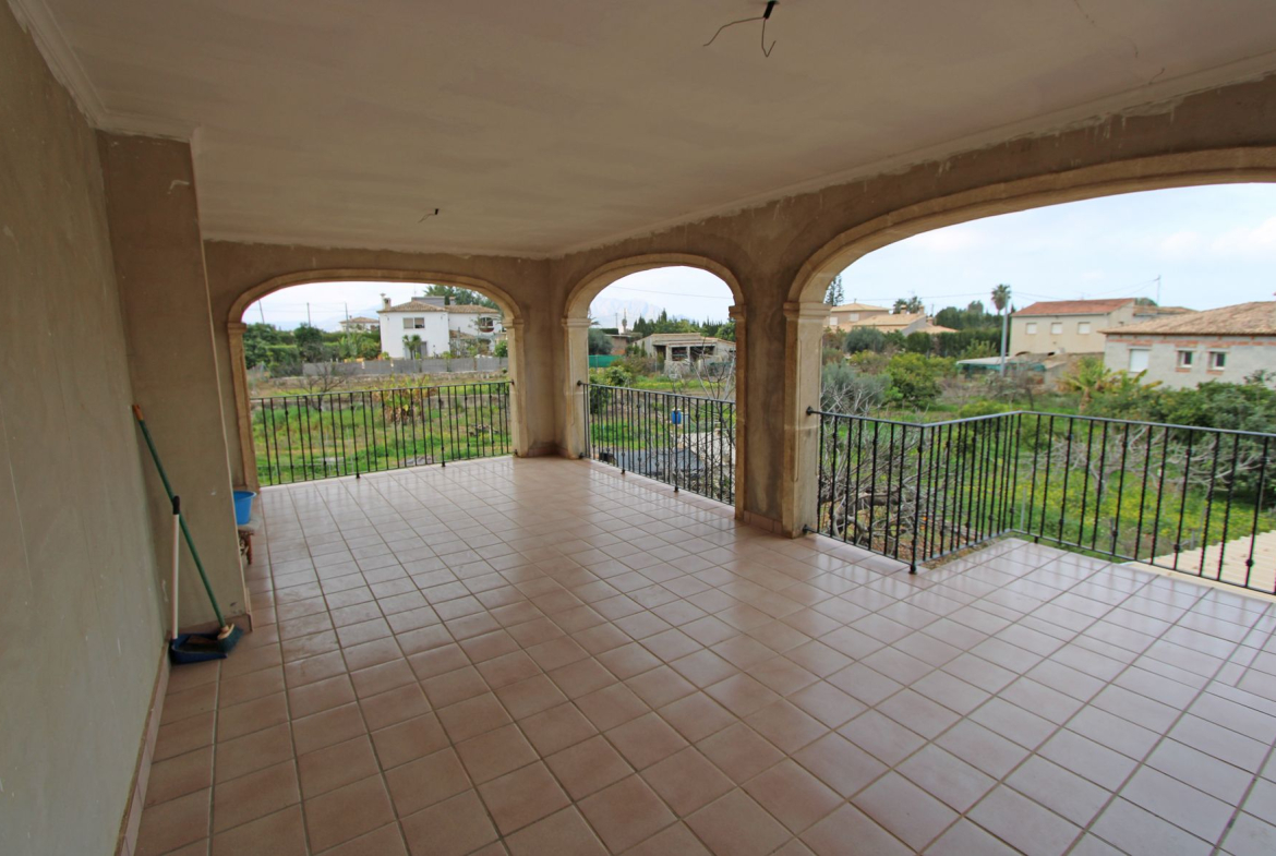 Finca for sale in Pedreguer (Costa Blanca). The villa consists of two floors. The ground floor is distributed in a living-dining room, a separate kitchen, a covered terrace, a bathroom and 3 bedrooms. The upper floor which is almost the same size as the one below is still to be finished/renovated. The property is very close to all services such as supermarket and restaurants. The nearest beaches are 15 minutes away. The largest shopping centre in the area is in Ondara about 10 minutes away by car, as well as the motorway to Valencia (1h) and Alicante (1h).