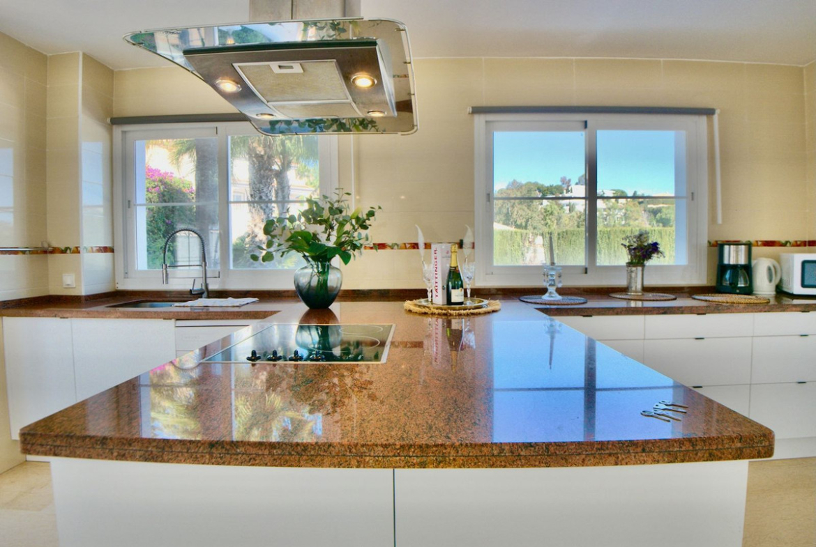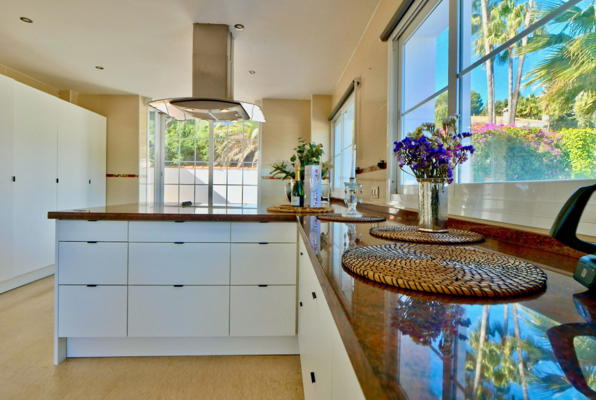 In the beautiful and attractive town on the Costa del Sol, La Cala de Mijas (Torrenueva), you will find this fantastic three-story villa with views of the Mediterranean Sea and Spain's Costa del Sol. Just half an hour from Malaga airport by car, you drive two minutes from the main road up towards the mountain and enter a large entrance hall with high ceilings, from where you have access to the villa's bright ground floor and upper floor, lower floor, stylish kitchen, living room with high ceilings, swimming pool and lovely terrace. With a total of 6 bedrooms ( 3 ensuits )4 bathrooms, 1 guest toilet , 2 Living rooms, two kitchens, two entrances, a garage with space for one car and a double garage with space for two cars, there is guaranteed room for the whole family and friends. The home can be divided, with a separate lower floor with three bedrooms, three bathrooms, private entrance and double garage, kitchen and living room. For example, you can have two families stay, rent the home to two families, or rent it to one family, while you yourself stay separately in the villa, with separate garages and entrances from two different streets. On the ground floor you will find one room and one bathroom with living room, kitchen, terrace and pool. If you go up to the first floor, you will find two en-suite bedrooms, where you can wake up with a view of the Mediterranean Sea. The location is absolutely top! Walking distance to some of the best beaches on the coast, the sea, shops, restaurants and driving distance to popular areas such as Marbella and Málaga The villa is centrally located, where you don't hear city and road noise, but get the most beautiful views of various other villas, natural areas, mountains and sea That way you are private, but close to everything . Book a viewing and experience this bright, spacious and beautiful three-story villa with your own eyes