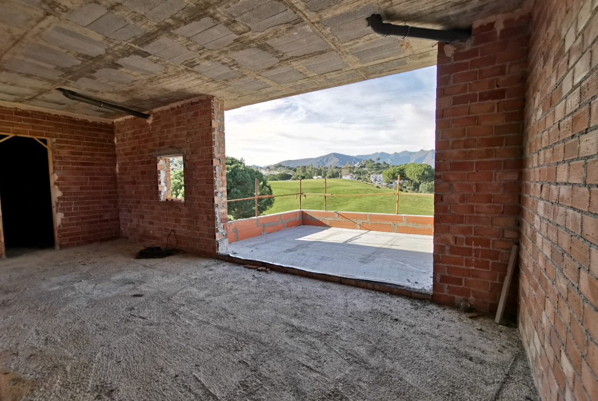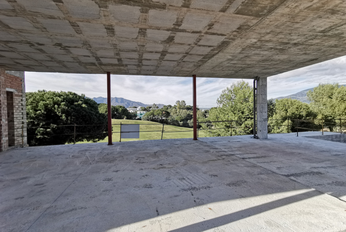 INVESTMENT OPPORTUNITY. One off chance to buy at rock-bottom price this large golf front villa overlooking the beautiful Asia course, one of the 3 superb golf courses in La Cala Resort. Under construction as the the villa is with an estimate cost to complete the construction of about 600.000€. The villa will welcome you with a grand entrance hall with double height ceiling and floor to ceiling windows overlooking the golf course, very large living and dining room with open plan kitchen, wrap around glass windows opening out onto a sunny terrace with infinity pool above the golf course. Two en-suite bedrooms with bathrooms are also on this floor. The first floor is home to the enormous master suite with very large bedroom, bathroom, dressing room and private terrace, and a further en-suite bedroom with terrace. The lower ground floor accommodates a huge space that can be designed to the buyer’s desire – gym, spa, indoor pool, further bedrooms. Garages for up to 6 cars. Lovely plot with garden boosting superb views over the golf course, don't miss out!