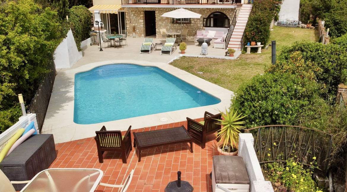 Welcome to this detached villa located in the highly sought-after area of Mijas, offering breathtaking views of sea and mountain…an enviable location, and a multitude of desirable features. Situated on a tranquil urbanization, this property spans across two floors, effectively comprising two separate houses. Notably, one of the houses is registered as a holiday rental, boasting an up-to-date license and a proven track record of generating substantial income annually.With a total area of 320 m², this villa offers ample space for comfortable living. The property boasts six bedrooms and five bathrooms, ensuring plenty of room for residents and guests alike. The well-designed layout includes fitted wardrobes in each bedroom, providing practical storage solutions.The villa sits on a generous land plot of 858 m², allowing for a beautifully landscaped garden that perfectly complements the tranquil surroundings. You can bask in the glorious Mediterranean climate and entertain guests on the terrace or balcony, both offering stunning panoramic views that stretch as far as the eye can see.Parking will never be a concern, as this property includes a dedicated parking space. The villa, in good condition since its construction in 1970, also features a storeroom to accommodate your belongings conveniently.As you explore the property, you'll discover a south, east, and west orientation, allowing abundant natural light to flood the living spaces throughout the day. The villa also offers individual heating for year-round comfort.Undoubtedly, one of the highlights of this villa is the inviting swimming pool, offering the perfect oasis for relaxation and recreation. Imagine taking a refreshing dip on a warm summer's day or simply unwinding poolside while enjoying the stunning surroundings.This magnificent villa in Mijas presents a unique opportunity to own a property that combines both a luxurious residential dwelling and a profitable holiday rental business. Whether you're seeking an exquisite home for personal enjoyment or a wise investment, this property fulfils both aspirations.Don't miss out on this exceptional opportunity. Embrace a lifestyle defined by magnificent views, a serene ambience, and the potential for substantial income. Contact us today to arrange a viewing and secure your dream villa in Mijas.