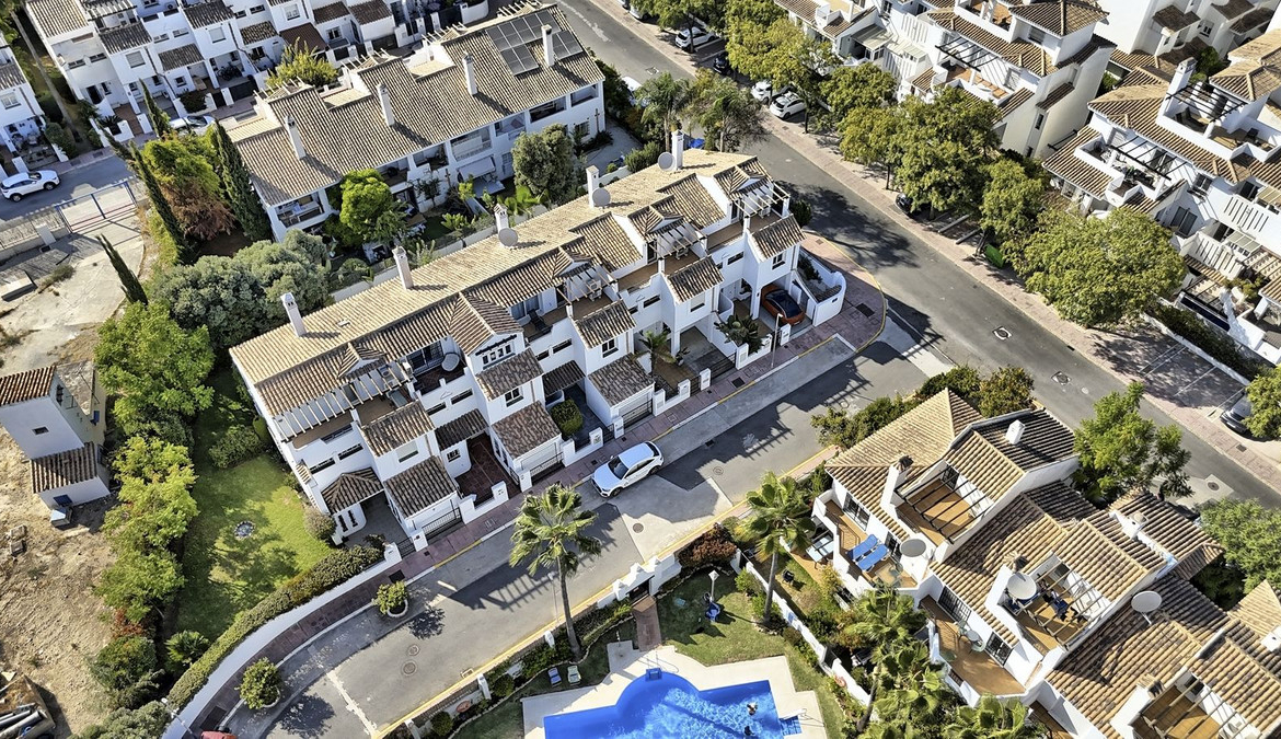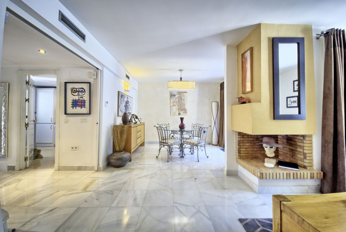 The property is just a five-minute drive or a 25-minute walk from the famous Puerto Banús marina and only a few minutes by car from Marbella’s Old Town. Everyday amenities are close at hand, with a Mercadona supermarket within the community and a bus stop just a minute away.