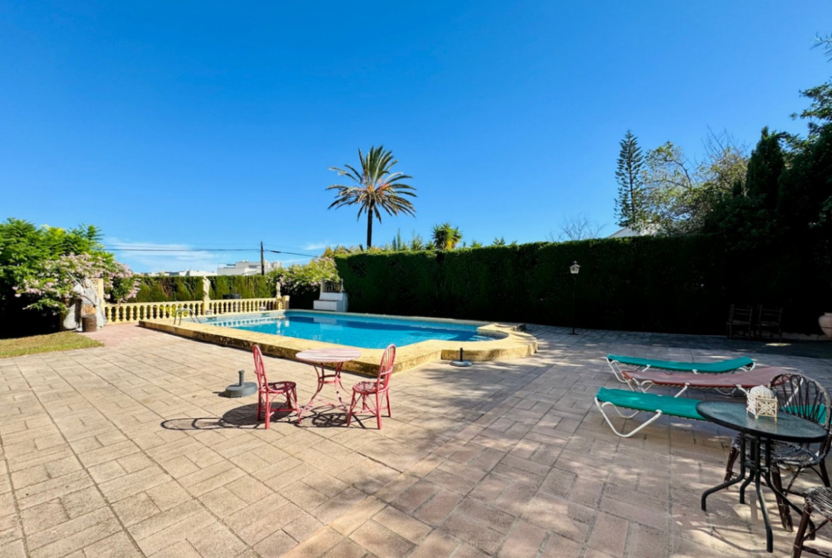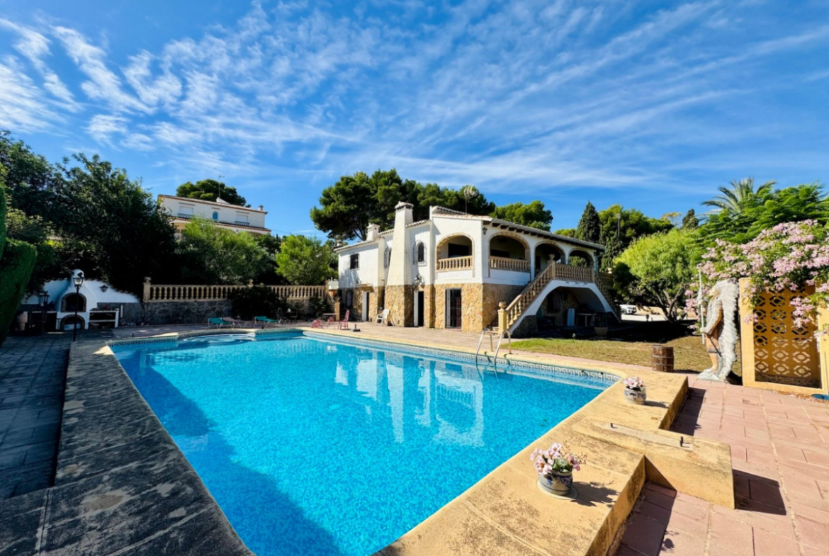 Discover this spacious and versatile villa in Javea, ideal for both private use and commercial activities. Located just 800 meters from the beautiful Arenal sandy beach, this property offers not only space, but also a central location perfect for those looking to enjoy Mediterranean living. The villa is located on a generous plot of 2,309 m² with a beautifully landscaped, mature garden. Although in need of renovation, the property offers endless possibilities to create a true paradise.