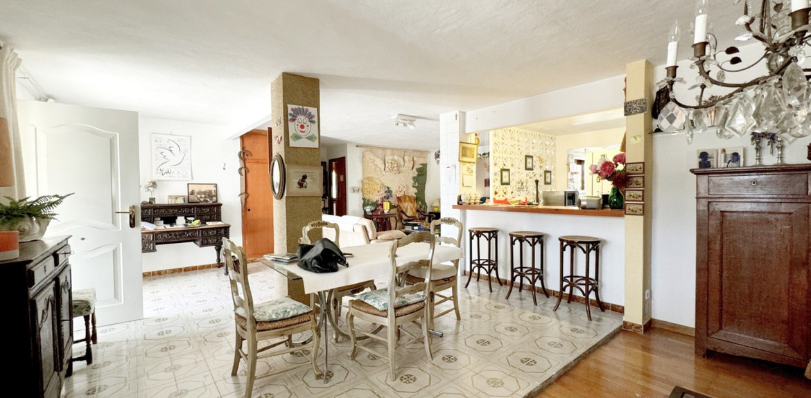 Set within a sprawling plot of over 1,000 square meters, this villa features a private pool and lush garden, creating your own personal oasis where you can relax and soak up the Mediterranean sunshine. Divided into two separate levels, each with its own kitchen, this villa is perfect for renting out or accommodating extended family. Furthermore, you'll find two cozy fireplaces, one on each level, adding warmth and charm to your living spaces.