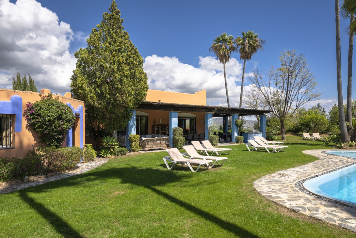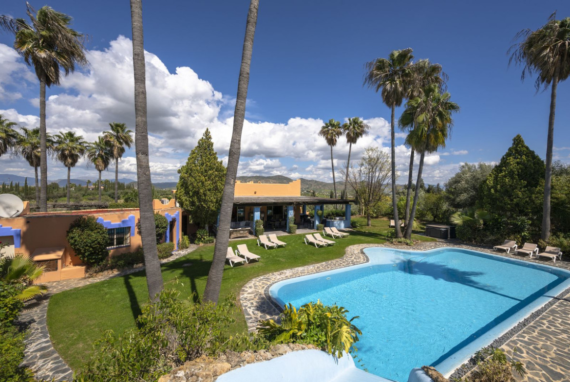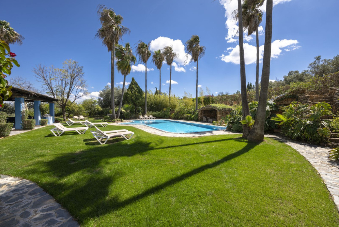On the same level as the lounge is the large master air-conditioned bedroom which has views across the olive groves. This bedroom also has direct access to the terraces & pool areas. Next to the master bedroom we have a lovely a twin bedroom. Downstairs we have 6 bedrooms all benefit from air-conditioning (3 x twins, 2 of which have an en suite bath and separate walk-in shower room and 3 x doubles with en suite walk-in shower).What makes this property extra special is the outside area. the pool which is directly in front of the veranda is incredible and has its own water-slide built into the tropical garden. The house is surrounded by a large covered terrace which in the summer acts as an alfresco living room plus a modern BBQ also situated close to the pool. Finally we have to mention the The Moroccan Suite: This lovely Moroccan just a few meters from the main house and overlooks the pool & gardens. This air-conditioned room has a double bed with a en suite walk-in shower room. Also plenty of space for parking and majestic driveway to the entrance of the property. A unique property not to be missed.