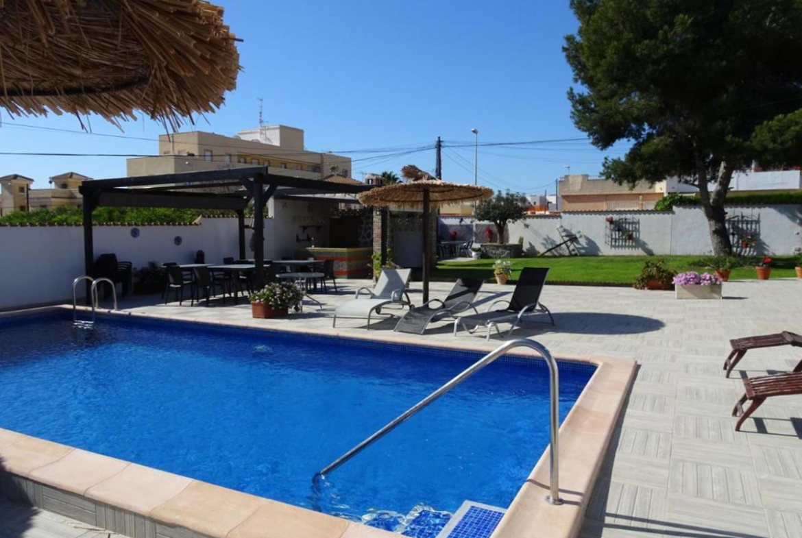This lovely Spanish villa with 9 bedrooms, large private garden with bbq area and heated swimming pool is situated in Lomas de Cabo Roig (Orihuela Costa), Alicante. Close to La Fuente commercial centre, the new Cabo Roig commercial centre and the sandy Orihuela Costa beaches.